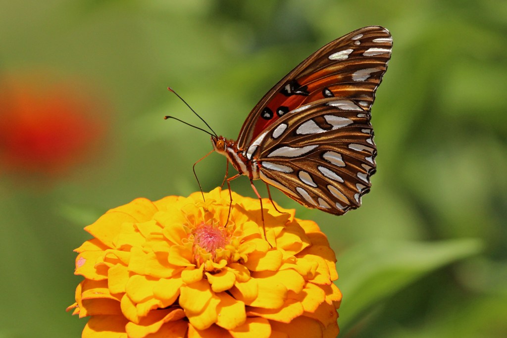so many visitors! I love Zinnias!