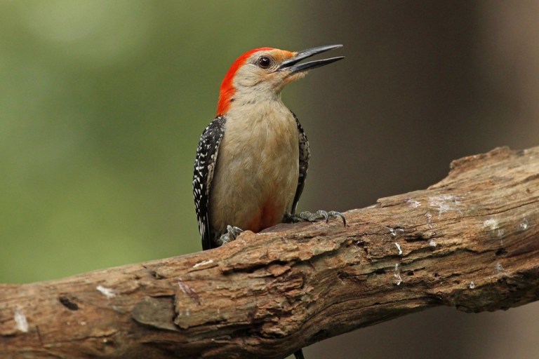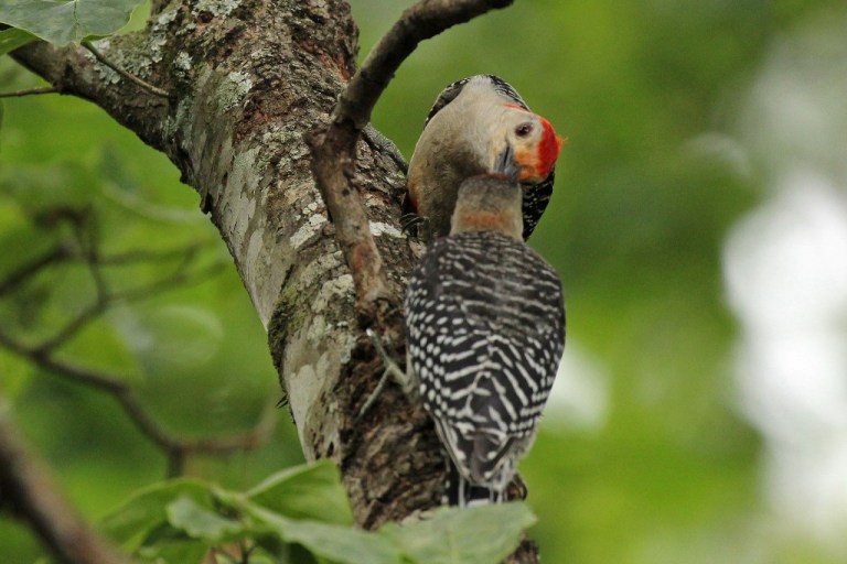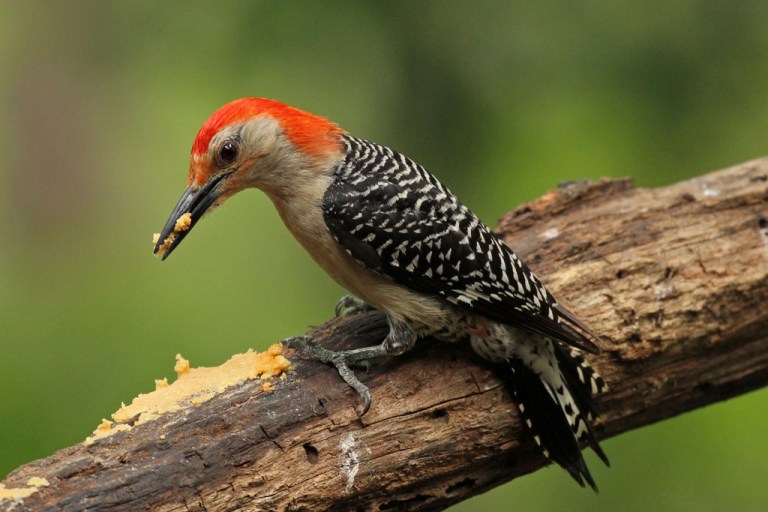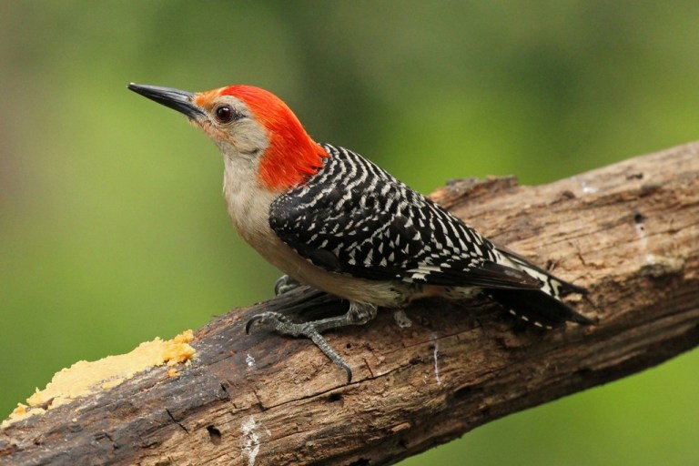 This Red-bellied Woodpecker landed on the Bark Butter Branch, brandishing his beak like a double-edged sword. Clearly, he wanted no company and no competition!