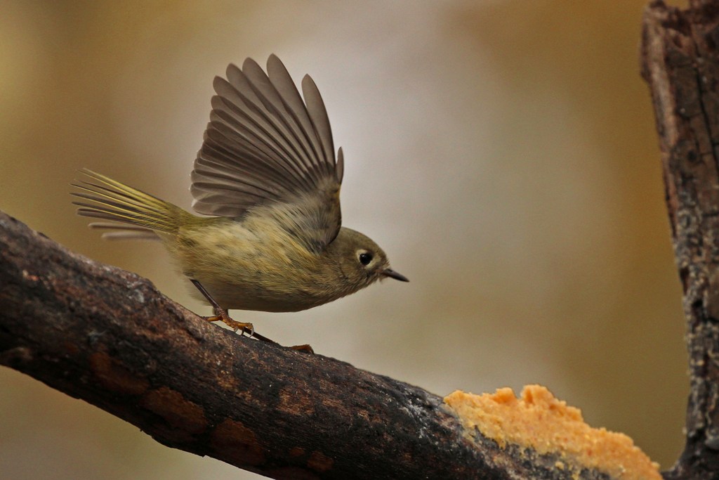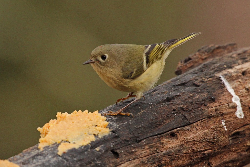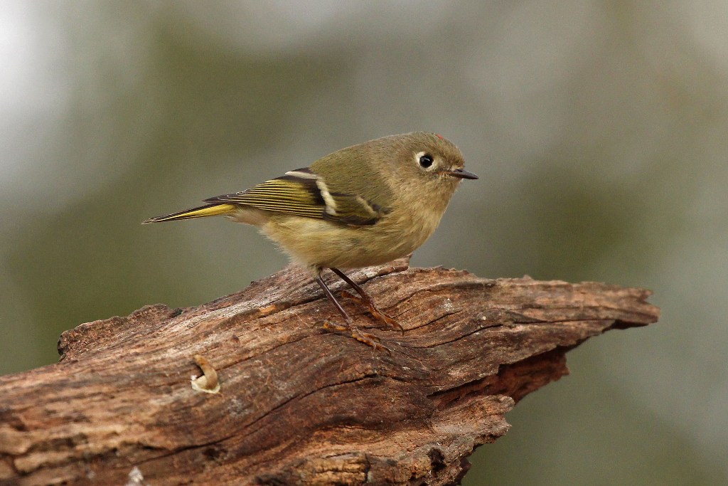 Yesterday was a perfect picture taking day – cold, slightly overcast, with the leaves still sporting a bit of autumn splash. And much to my delight, my favorite fall fidgeter showed up – the Ruby-crowned Kinglet.