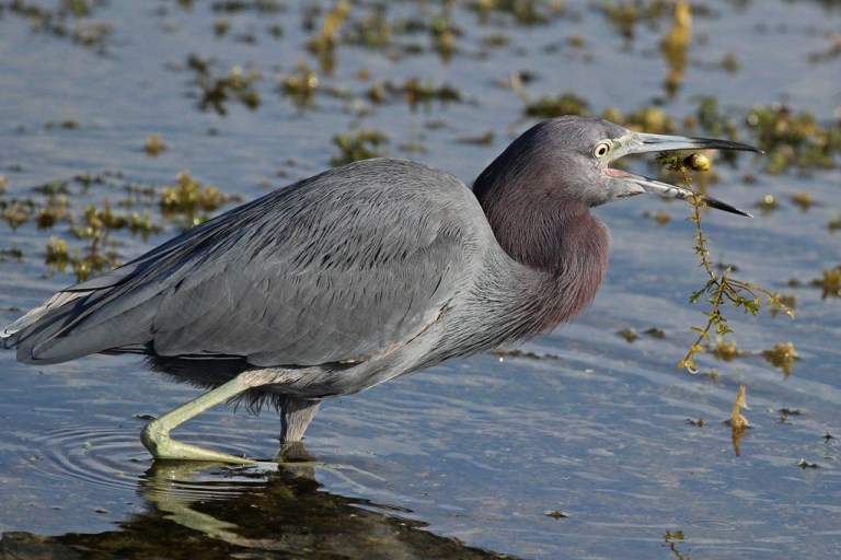 Also out in abundance was the Little Blue Heron. You can see that he is smaller than the Great Blue (hence the name) and lacks the white facial feathers and the dark legs of his relative.