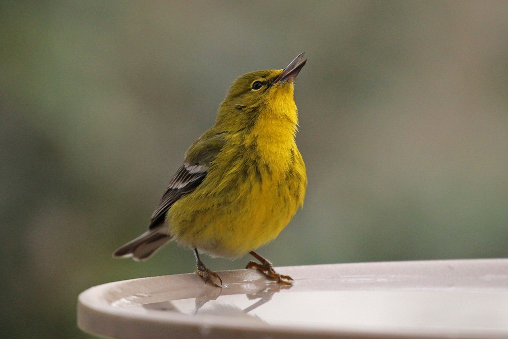 His sun-shiny, sweet-singing cousin, the Pine Warbler, is a year round resident in my neck of the woods, but he comes to the feeders more frequently in the colder weather.