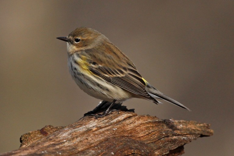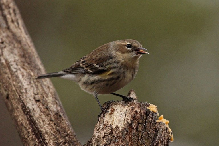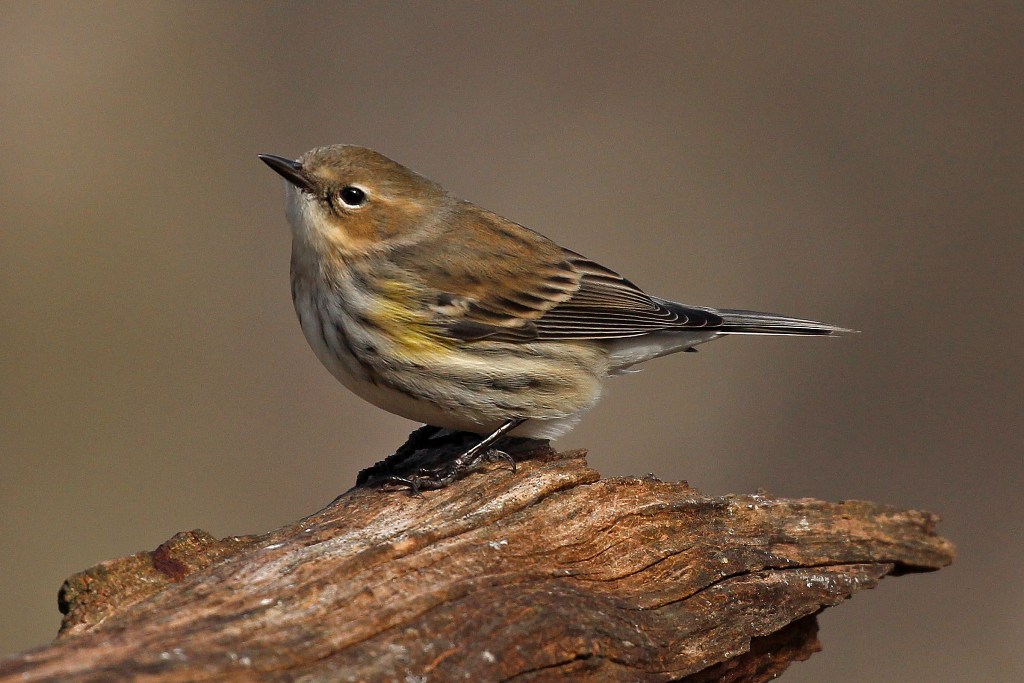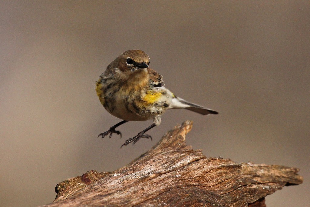 First on the billing is the Yellow-rumped Warbler (a little bird I adore) who arrives in late fall and stays til early spring. His markings start off with an abundance of beige and cream and dabs of yellow, but will blacken up when mating season rolls around.