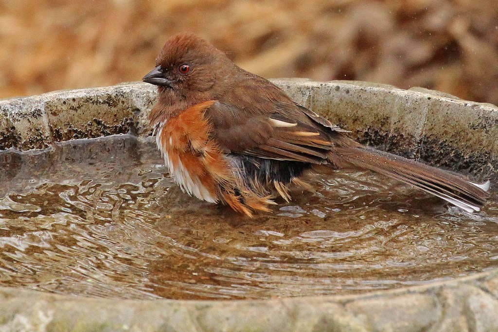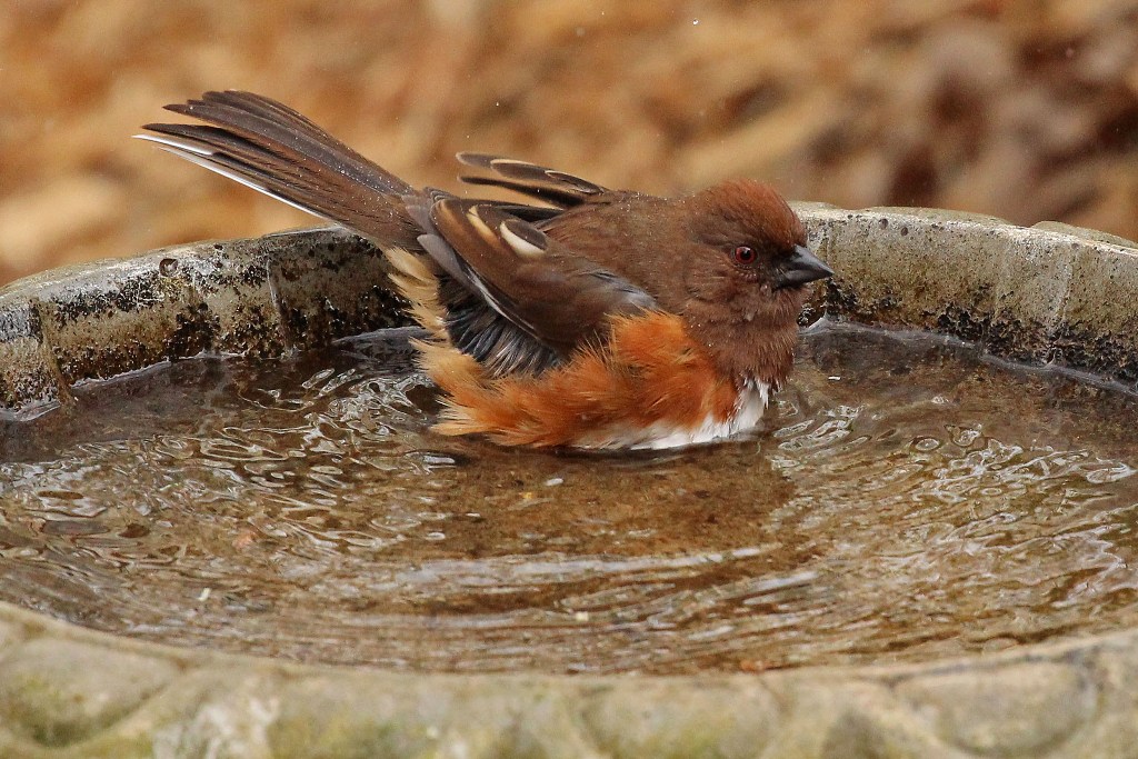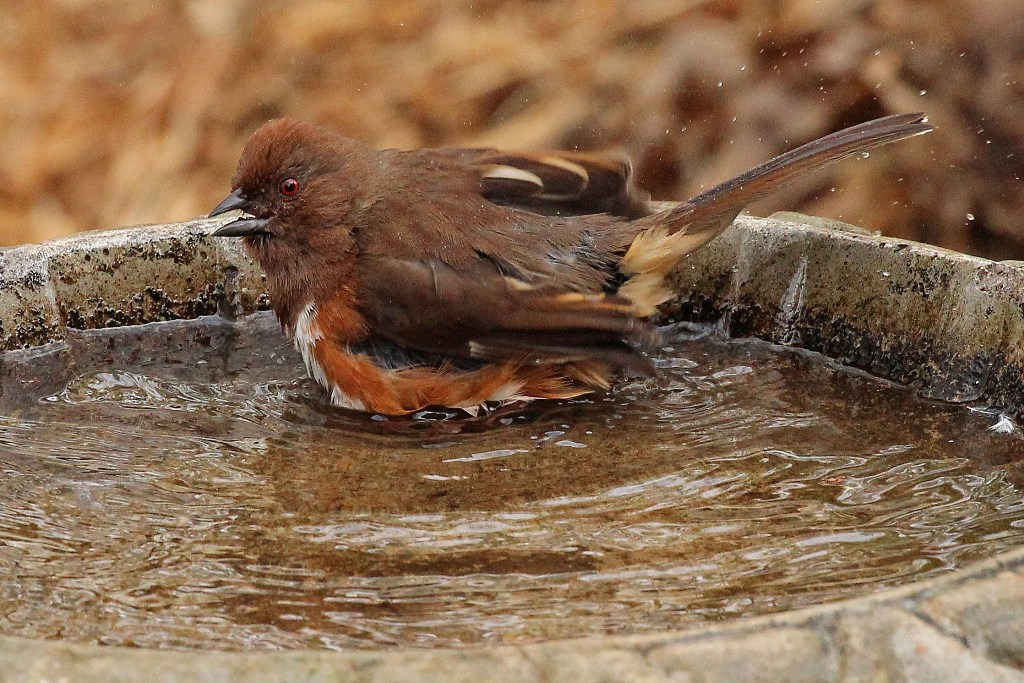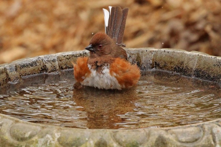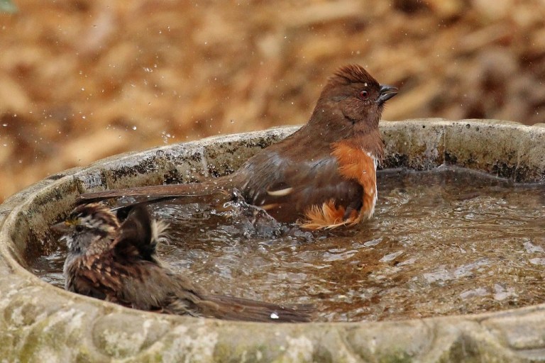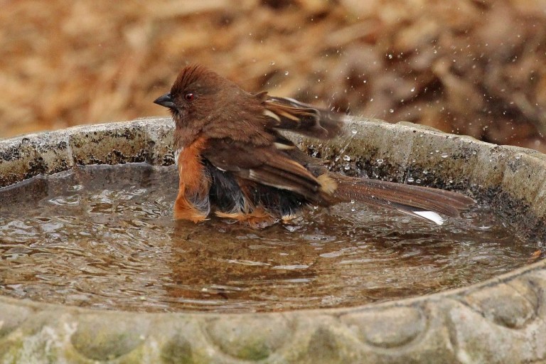 Now to convince the male to come and have some Towhee time in the birdbath!