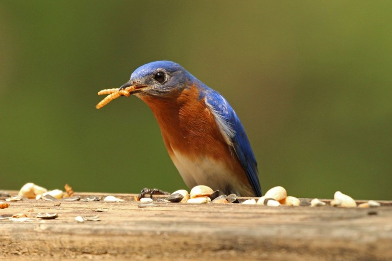 Of course, the winner of the most masterful woo-er award goes to the male Bluebird. Besides his dashingly good looks, this fellow has acquired the art of double mealworm nabbing.
