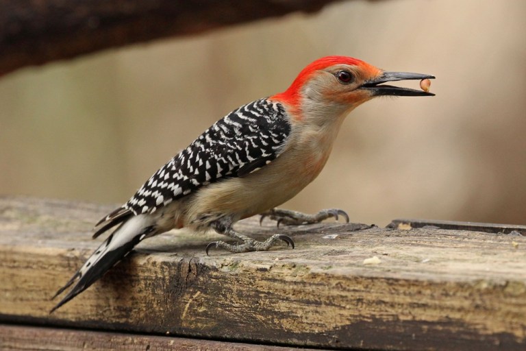 This fellow dropped in the other day to partake of some peanuts. He perched on the rail to grab a nut..