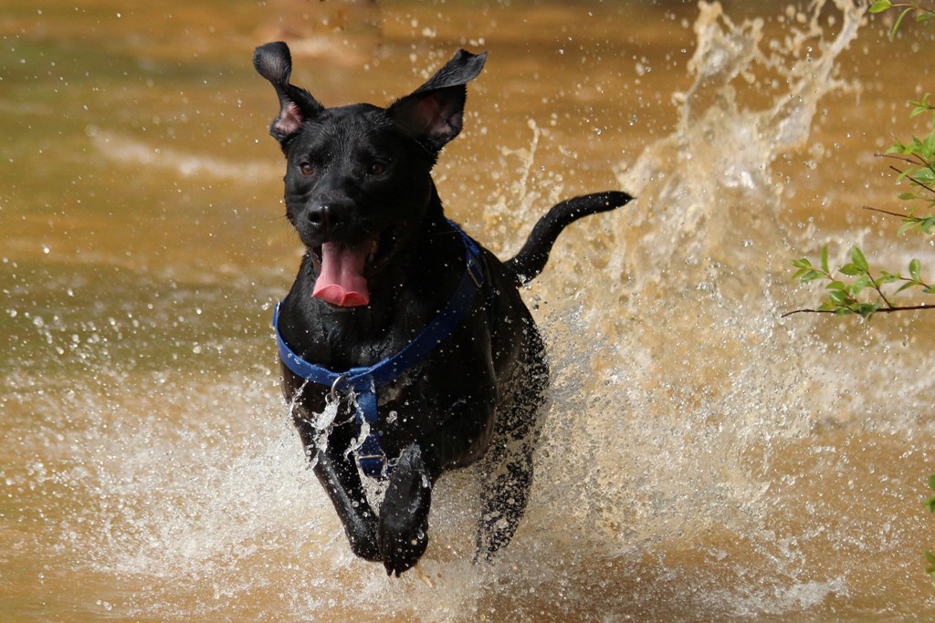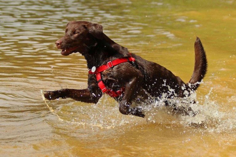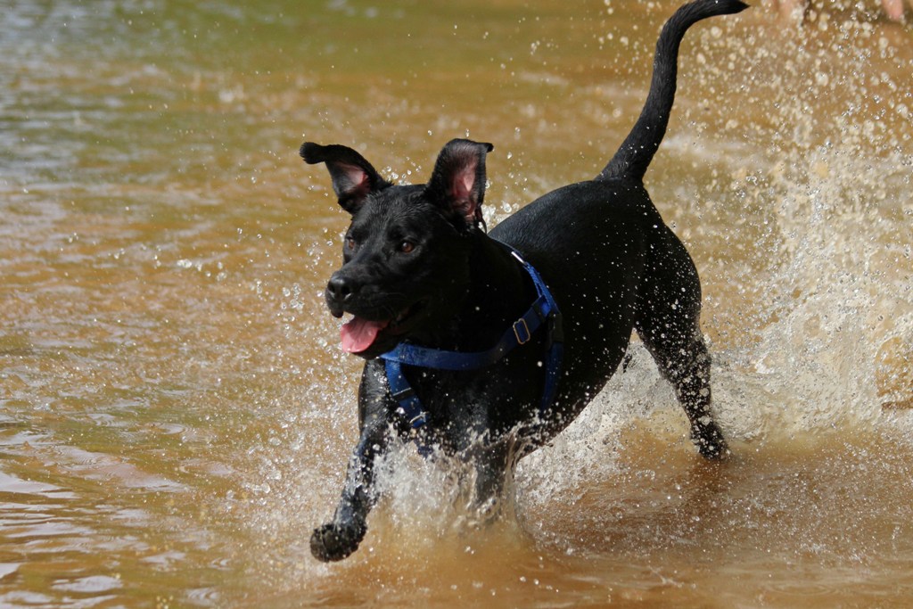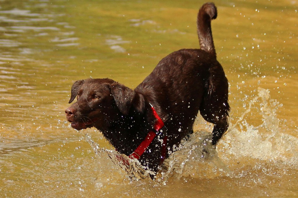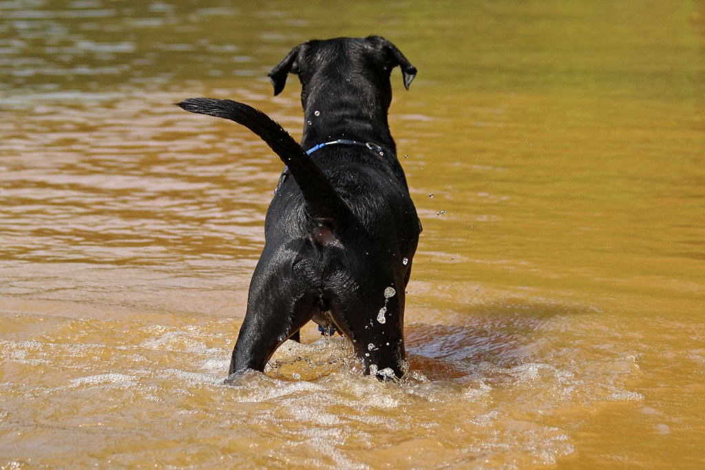You know he’s about “tuckered out” (bad pun!) when he starts standing and just watching the water, with his tail still wagging.