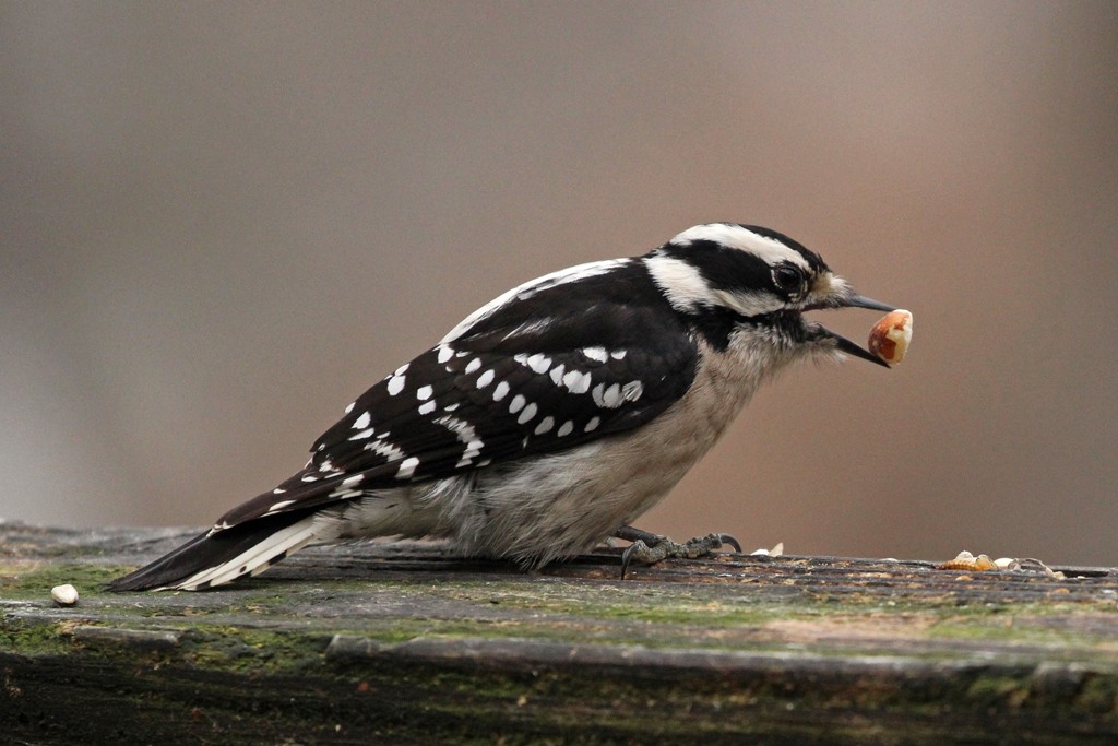 A Pine Warbler, Downy Woodpecker, and female Cardinal sampled the peanuts…