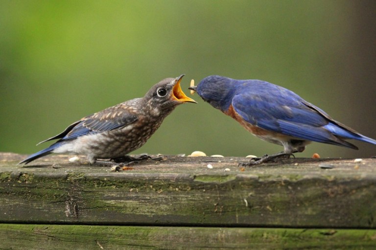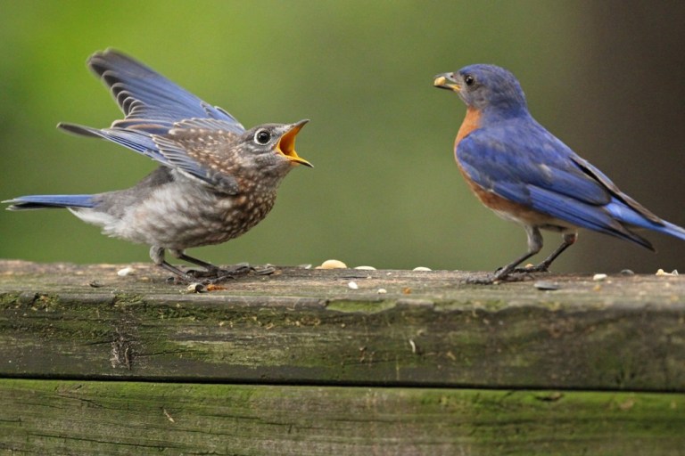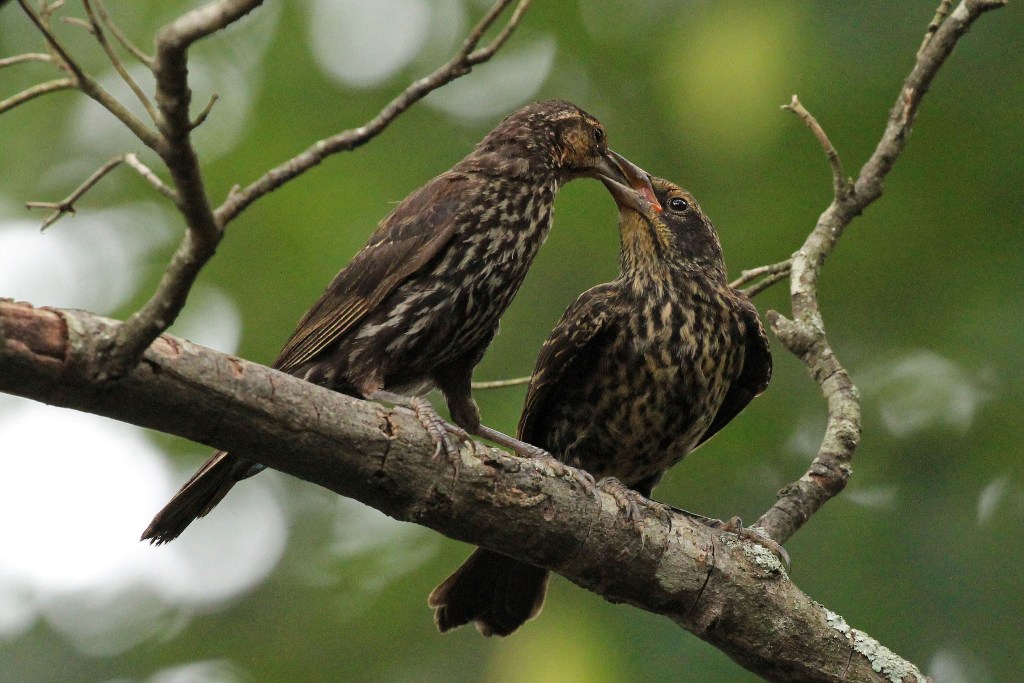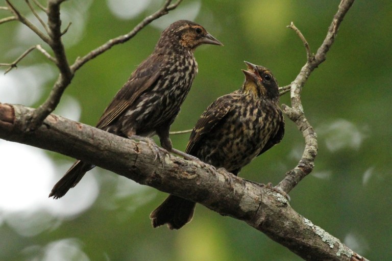 Others are still coming in the company of a parent, and continue to be quite vocal about making their hunger known…like this Red-winged Blackbird baby (who looks nothing like its Daddy!)…