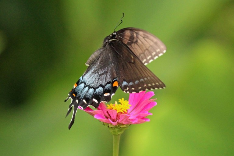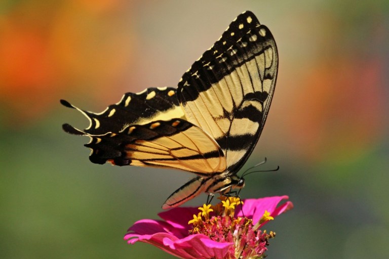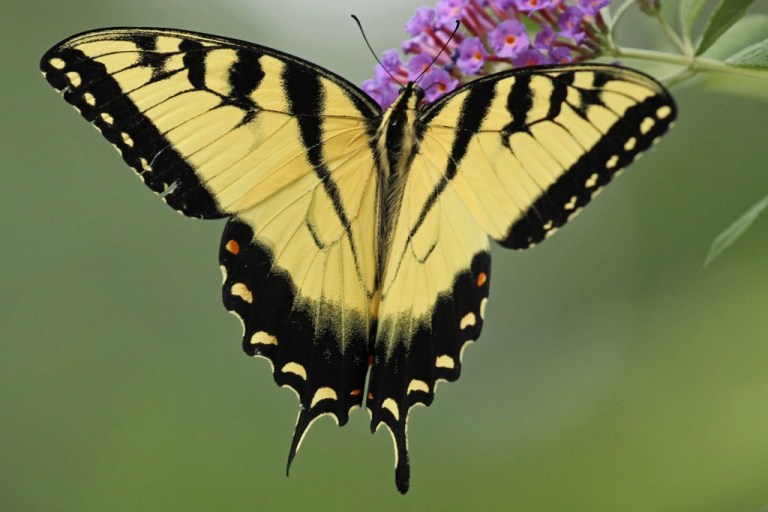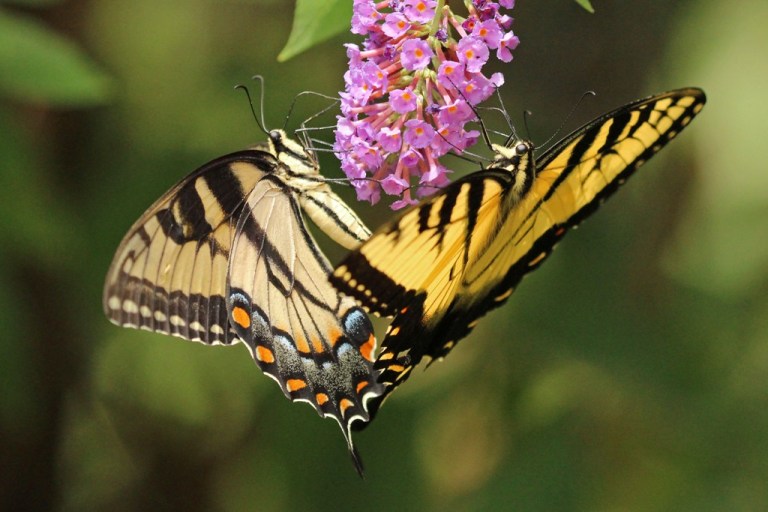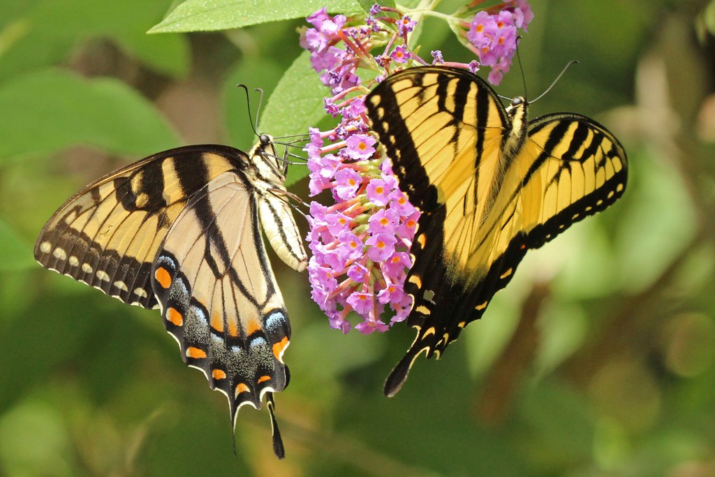 Tiger swallowtails only live for a couple of weeks. You can tell when they are at the start of their lifespan because their scales are still vibrant (Yep – butterflies have scales!) and their “tails” are still intact.
