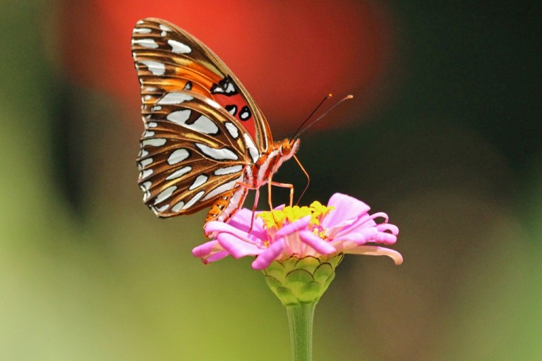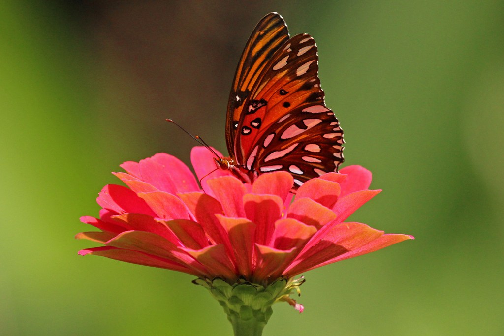 By themselves, Zinnias are lovely flowers, but when you pair their petals with a perched Fritillary, it’s a picture perfect combination!