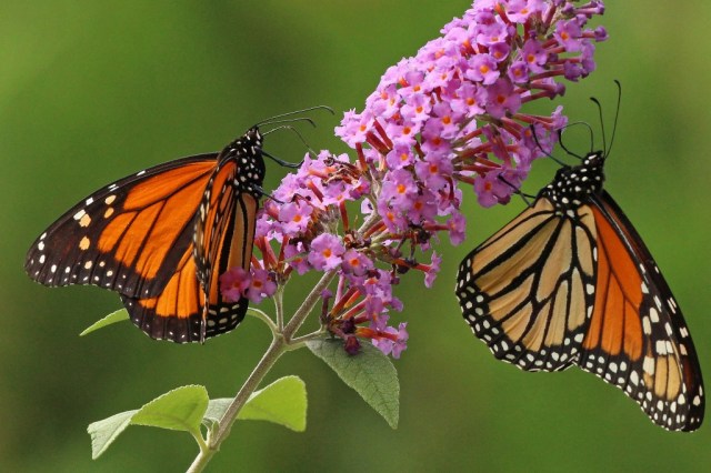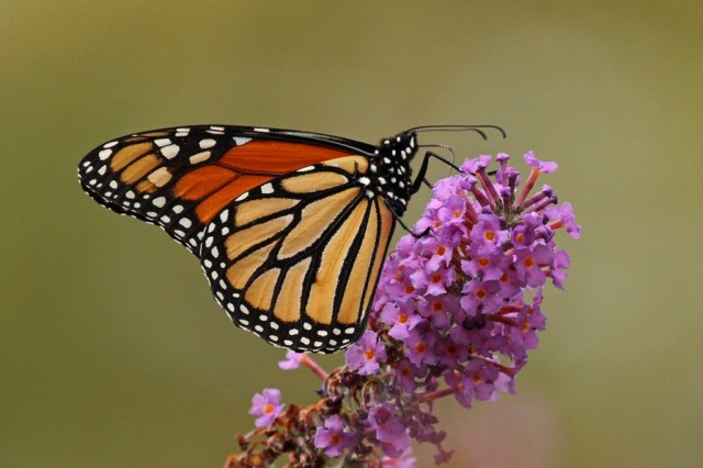 About a dozen Monarchs were flitting about, feasting on the purple blossoms.