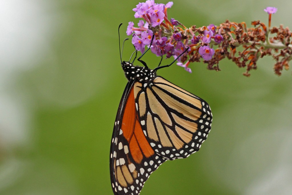 About a dozen Monarchs were flitting about, feasting on the purple blossoms.