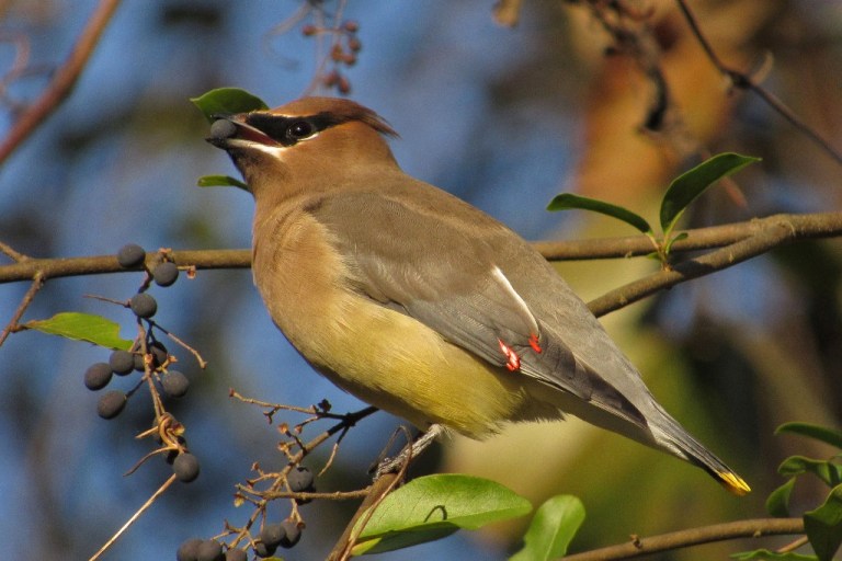 Typically, a bird would land on a twig, scout out the clusters, and then pluck a berry and swallow it whole.