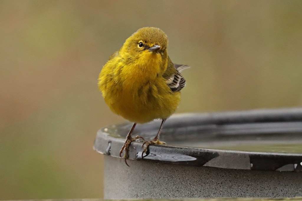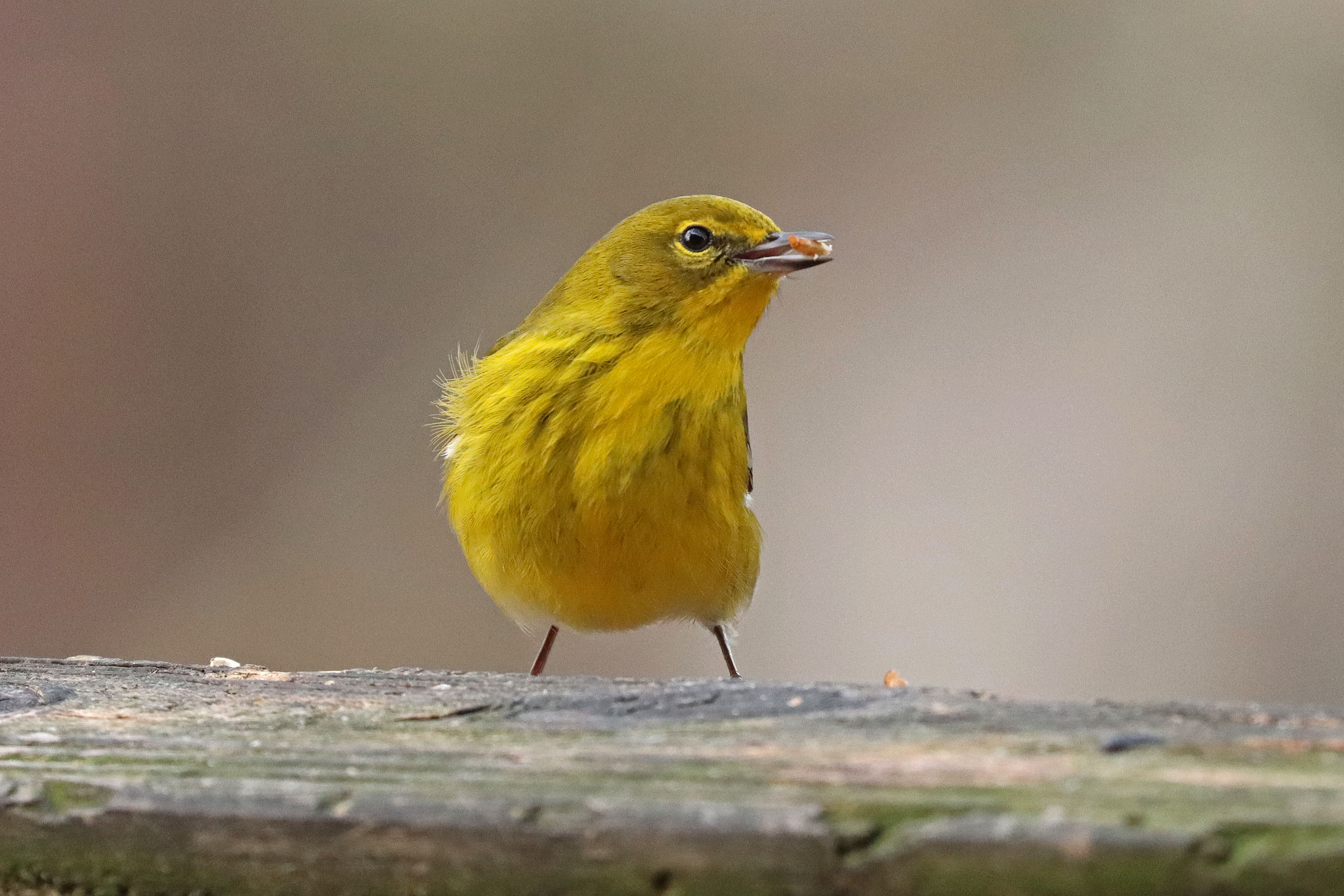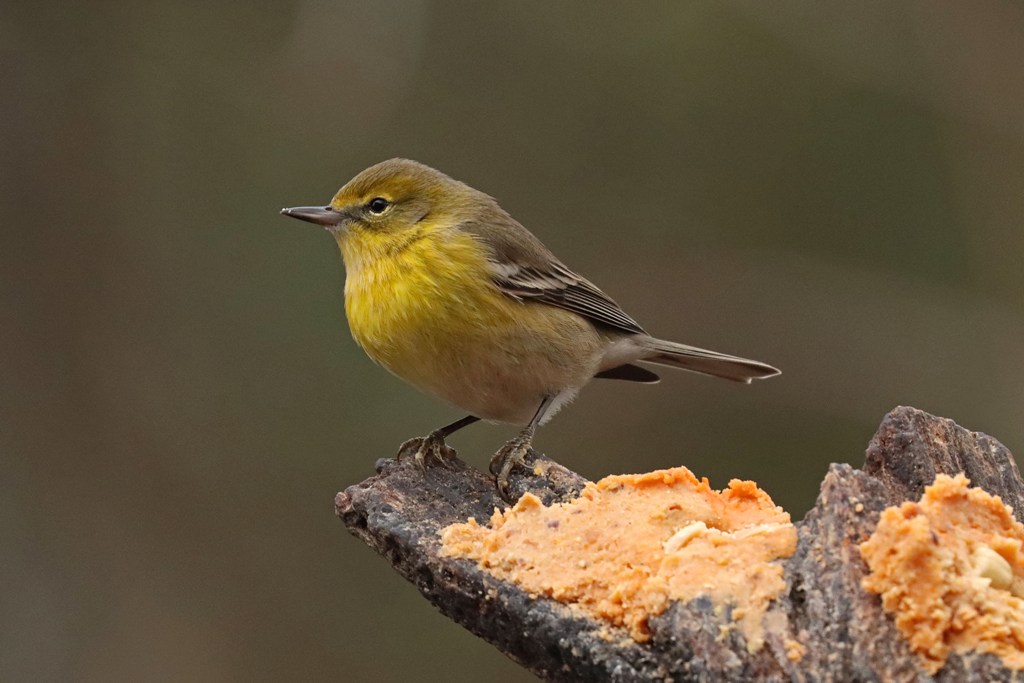 This male Pine Warbler (always willing to pose for food provisions) is a good example. Isn’t he fantastic?