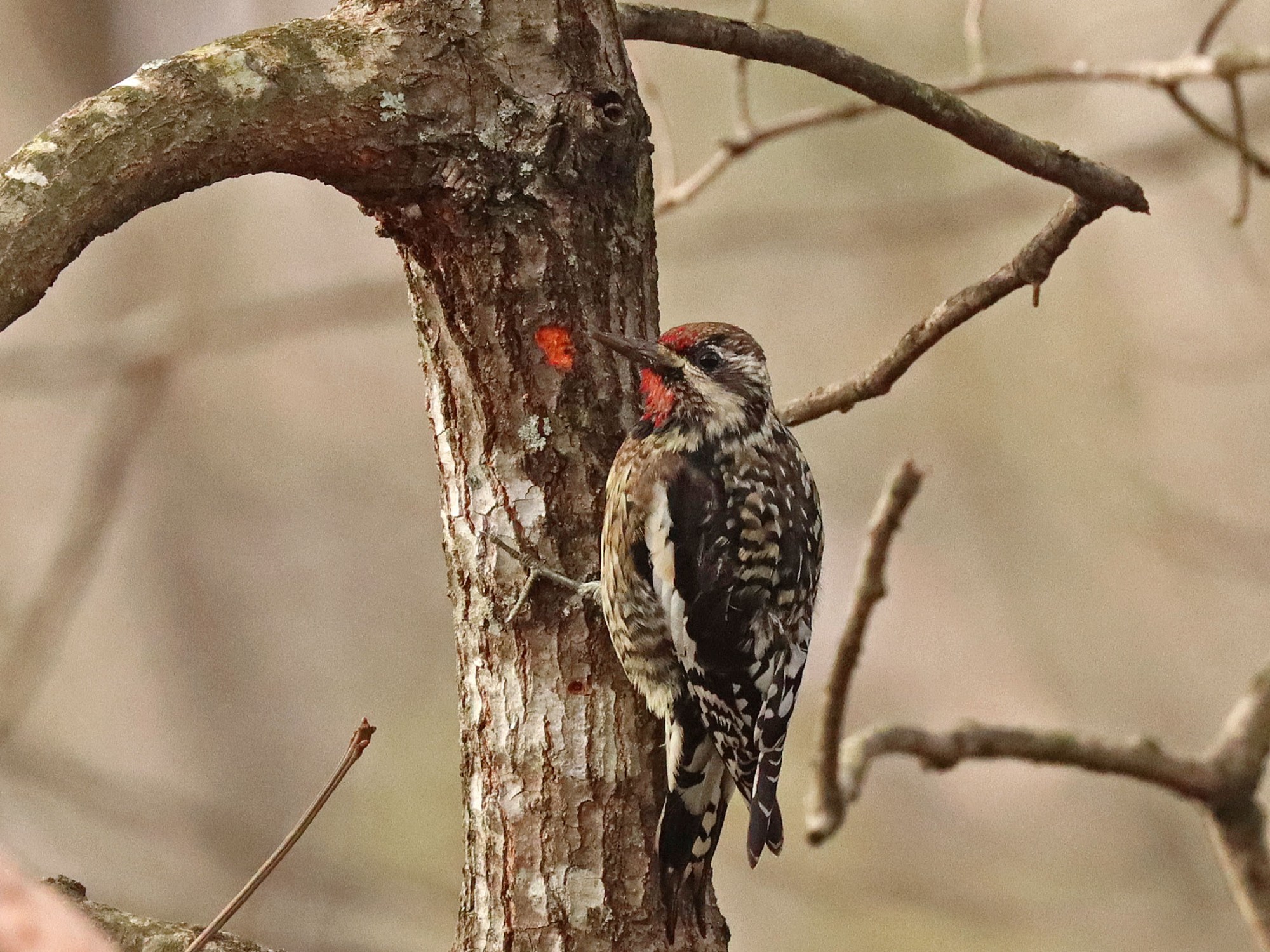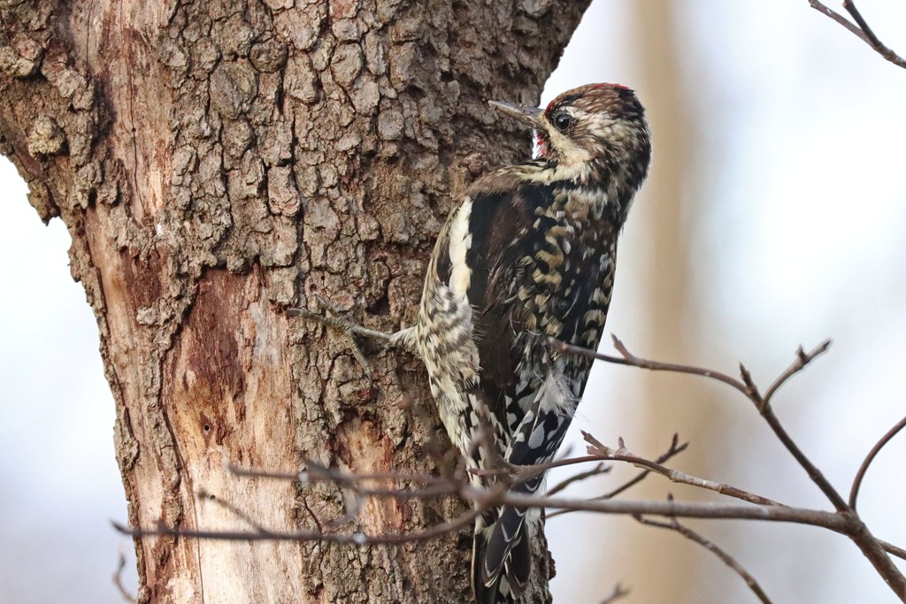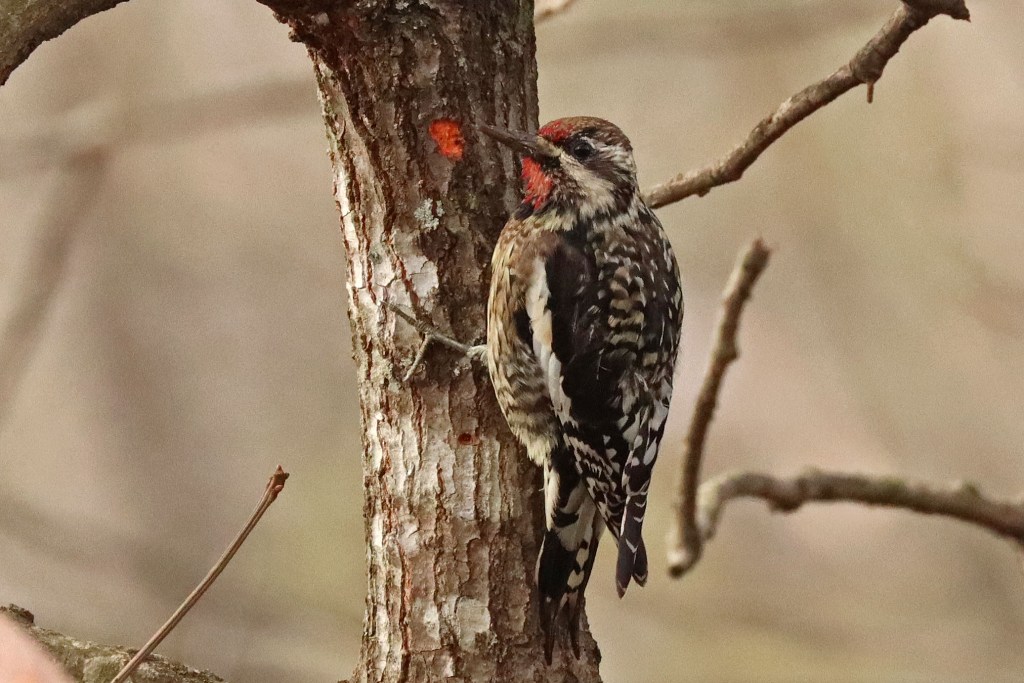 This Yellow-bellied Sapsucker (a rare visitor to my backyard) landed for a brief moment on a close Dogwood…
