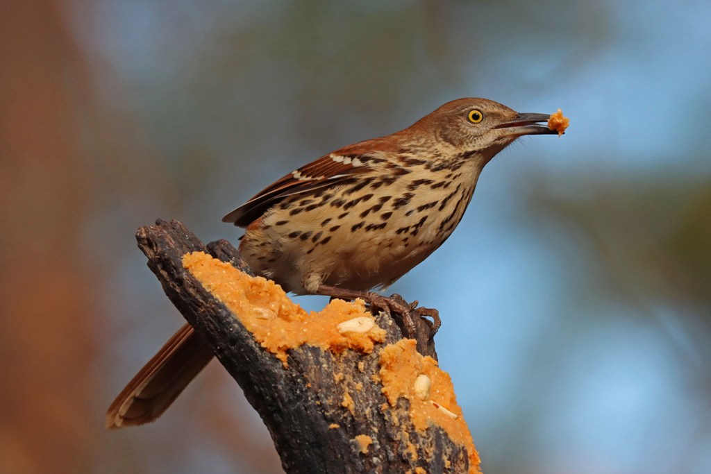 In years past, Brown Thrashers have been common visitors to the backyard buffet, but this year their appearances have been few and far between. So, it was a pleasant surprise when this fellow swooped in for a quick bite of breakfast.