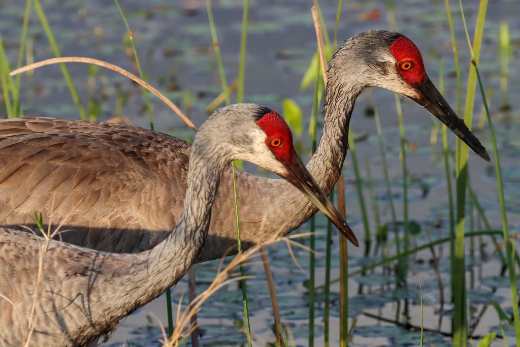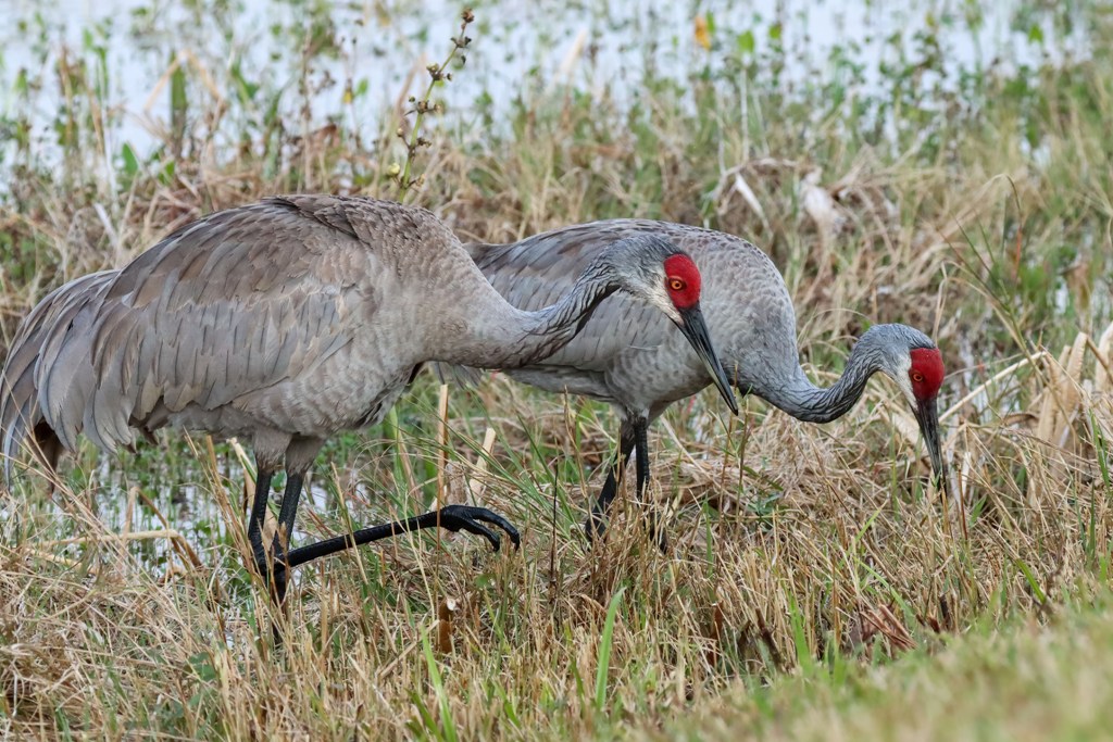 There were actually a pair of Sandhill Cranes that we met in the parking lot (they were up to no good and ready to vandalize a vehicle!) and then we saw them again at the edge of the marsh.