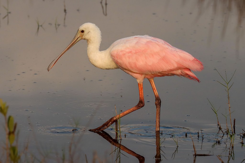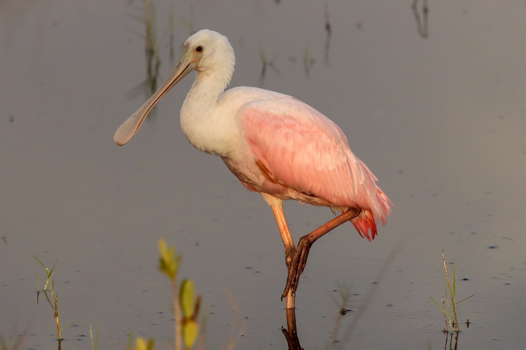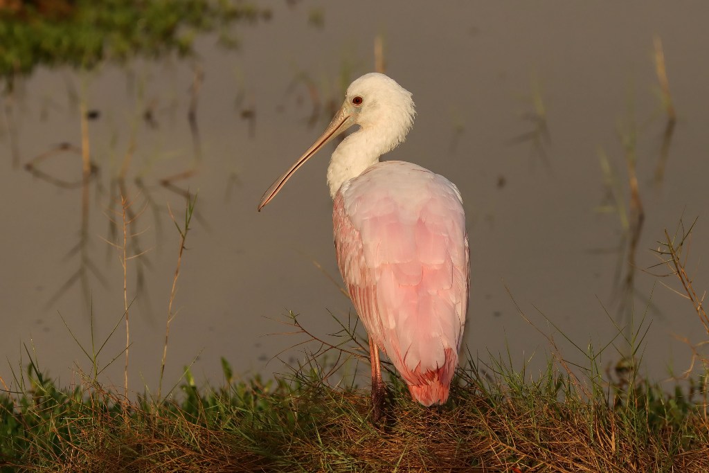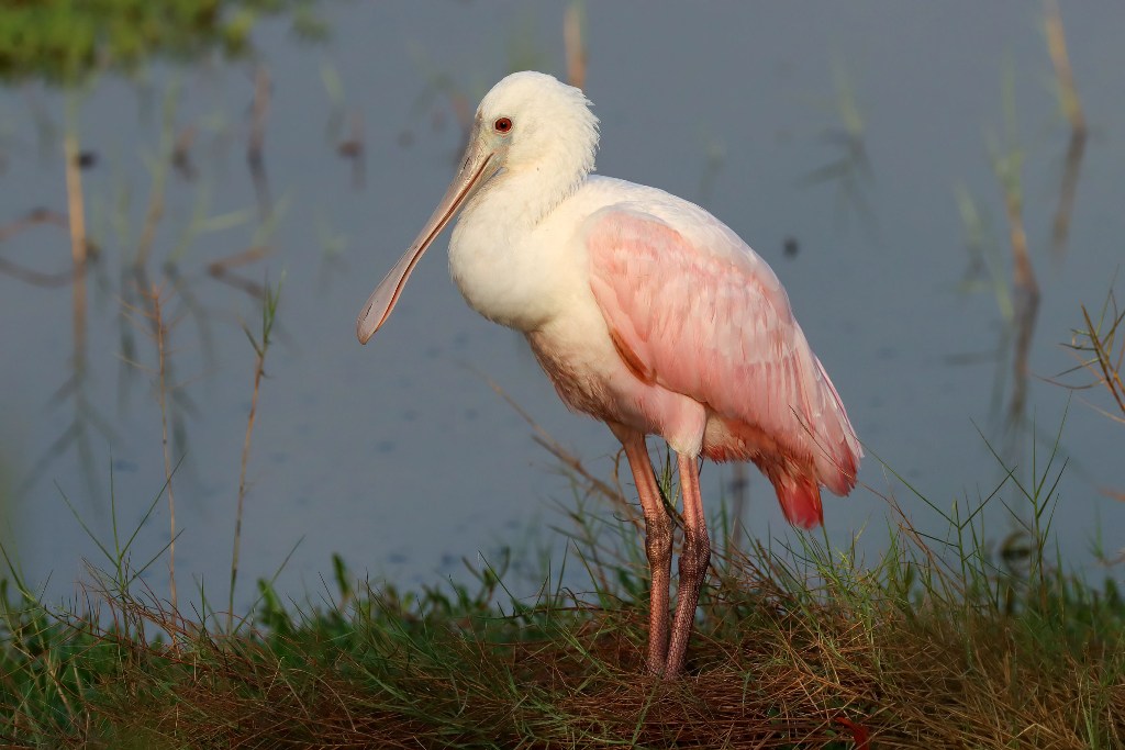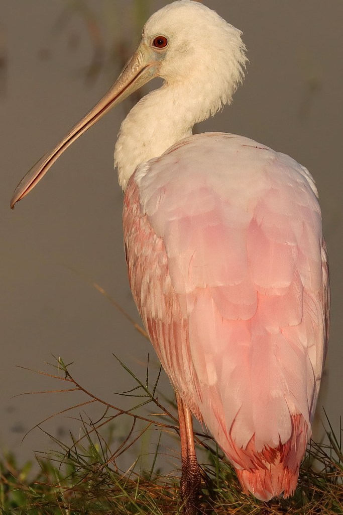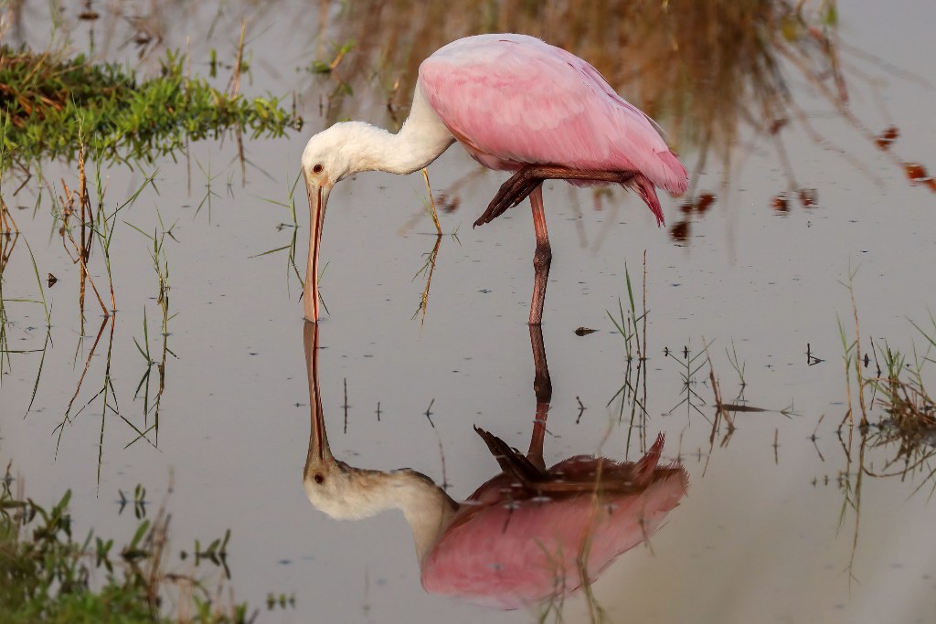 I’ve read that flamingo are pink because they only eat shrimp. This bird looks as if it could be a relative with the obvious exception of the spoon bill. Both are waders. Do they congregate in flocks too? That pink color is really beautiful.
