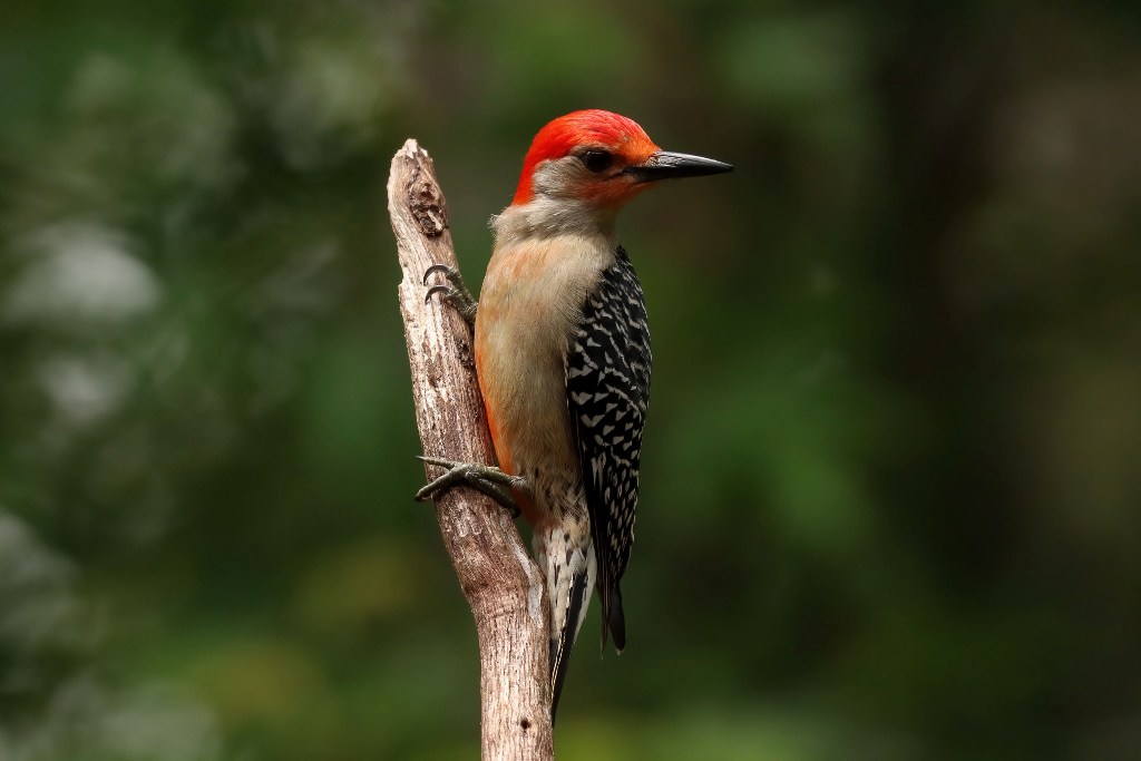 Backyard Battleground…Feuding Feathers…Rivalry in Red…Woodpecker Warfare…I’m pretty sure any of those titles would have conveyed what’s been taking place in my backyard! Suffice it to say, the Red-headed Woodpeckers and their Red-bellied cousins are not happy with each other.