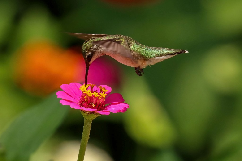 I was a little scared the first time I saw one too. I googled “humming bee” to find out what it was!
