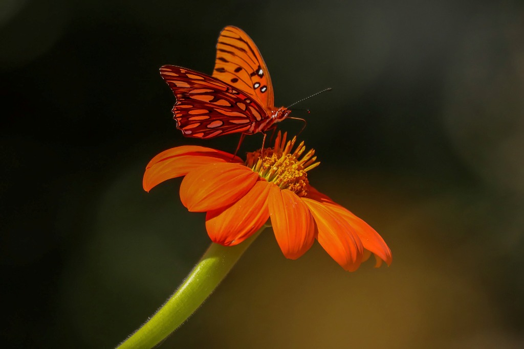Orange is all the rage in my front yard these days! Last week there were Monarchs sipping at the Mexican Sunflowers, and now there are a handful of Fritillaries nipping at the nectar.
