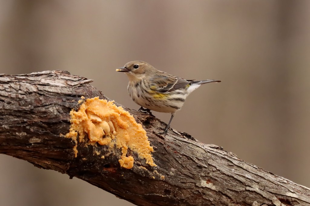I was hoping these lovely little birds would find their way to the Bark Butter I’ve been putting out. They were fairly faithful visitors where I used to live, showing up on a regular basis during their migration months.