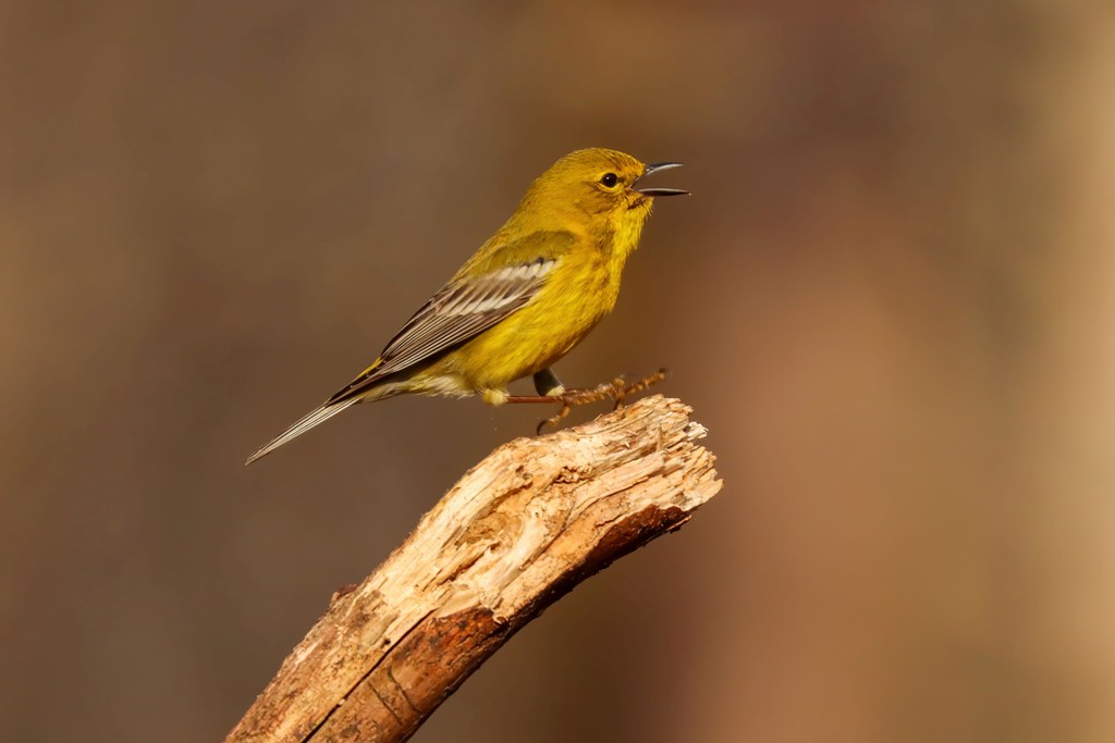 Just as the sun was setting this evening, a glorious male Pine Warbler hopped to the tip-top of a branch and sang his little heart out.