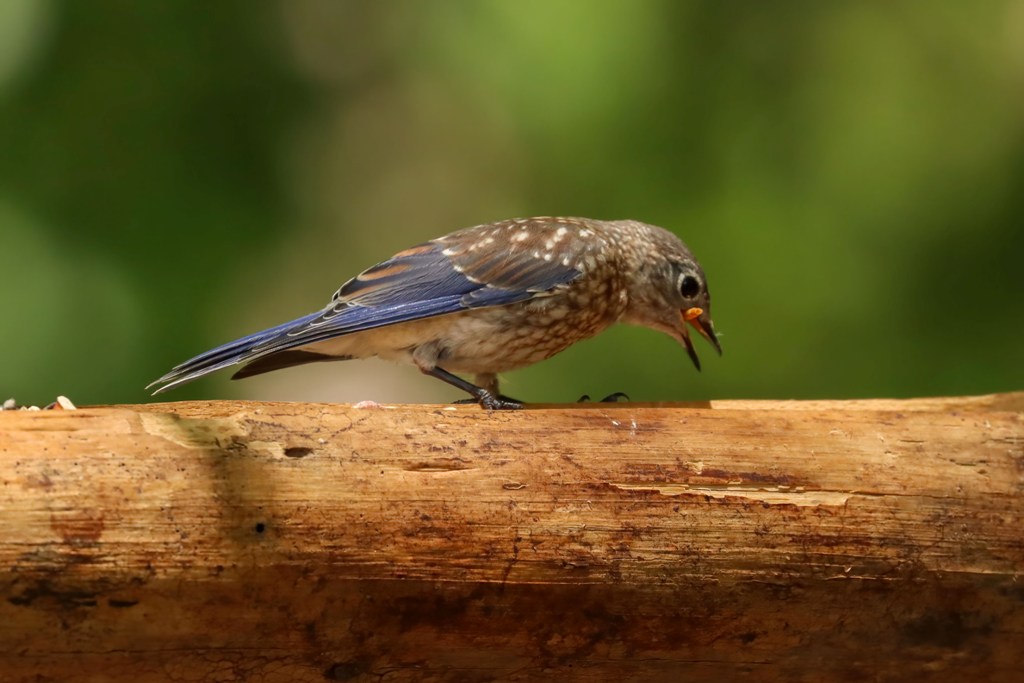 I just love these terrific photos of your backyard friends, Kathy! Each one is a delight, and I’ve never seen a young bluebird before – what a treat.
