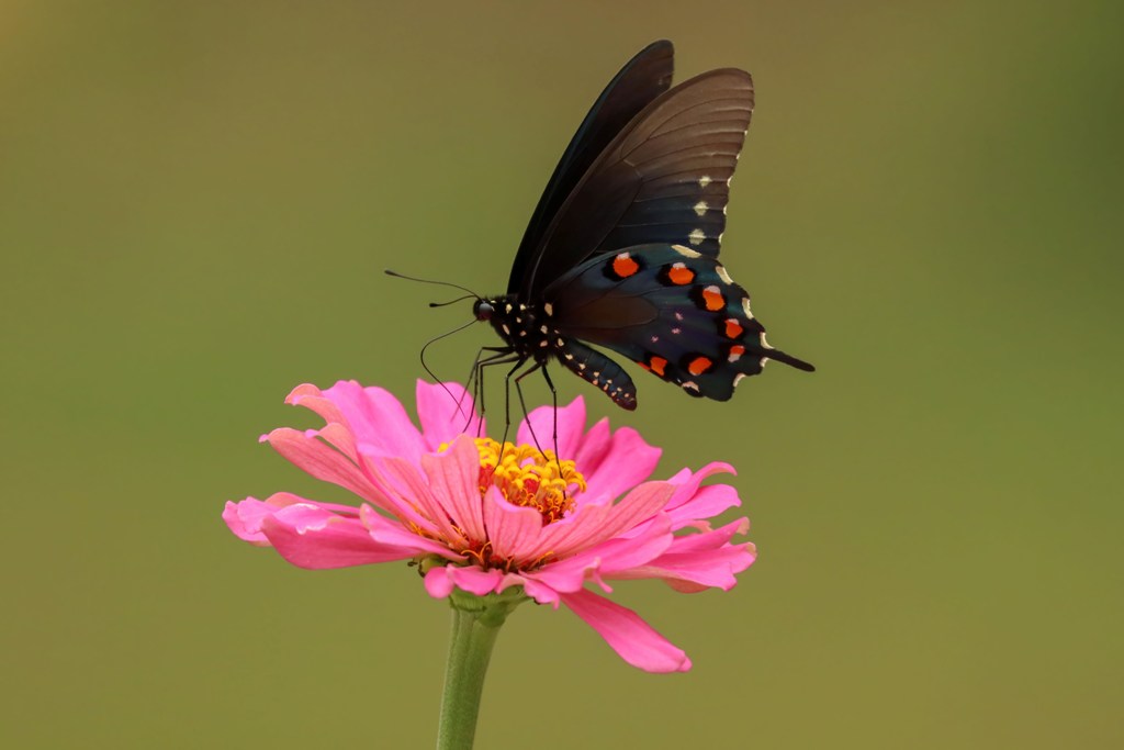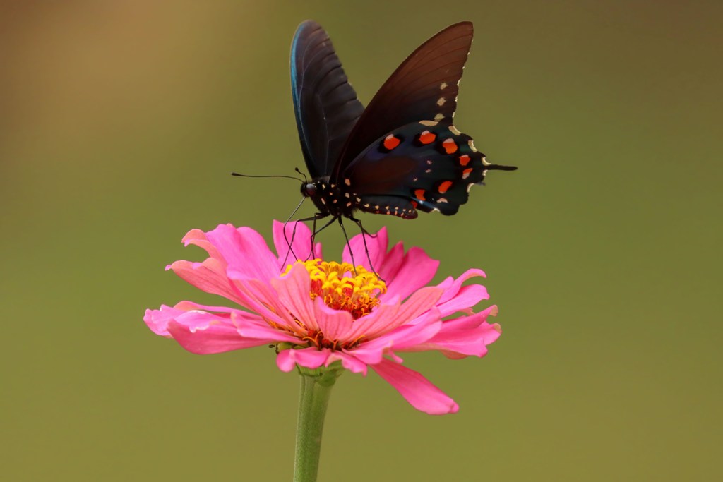 This week, I had the chance to snap shots of a pretty Pipevine Swallowtail, who was visiting some rogue Zinnias that popped up where we didn’t plant any…