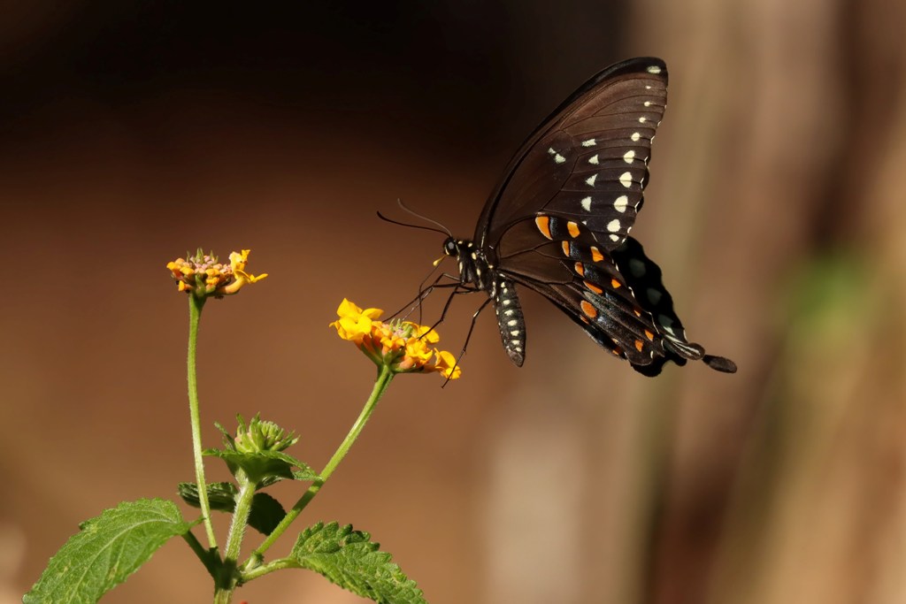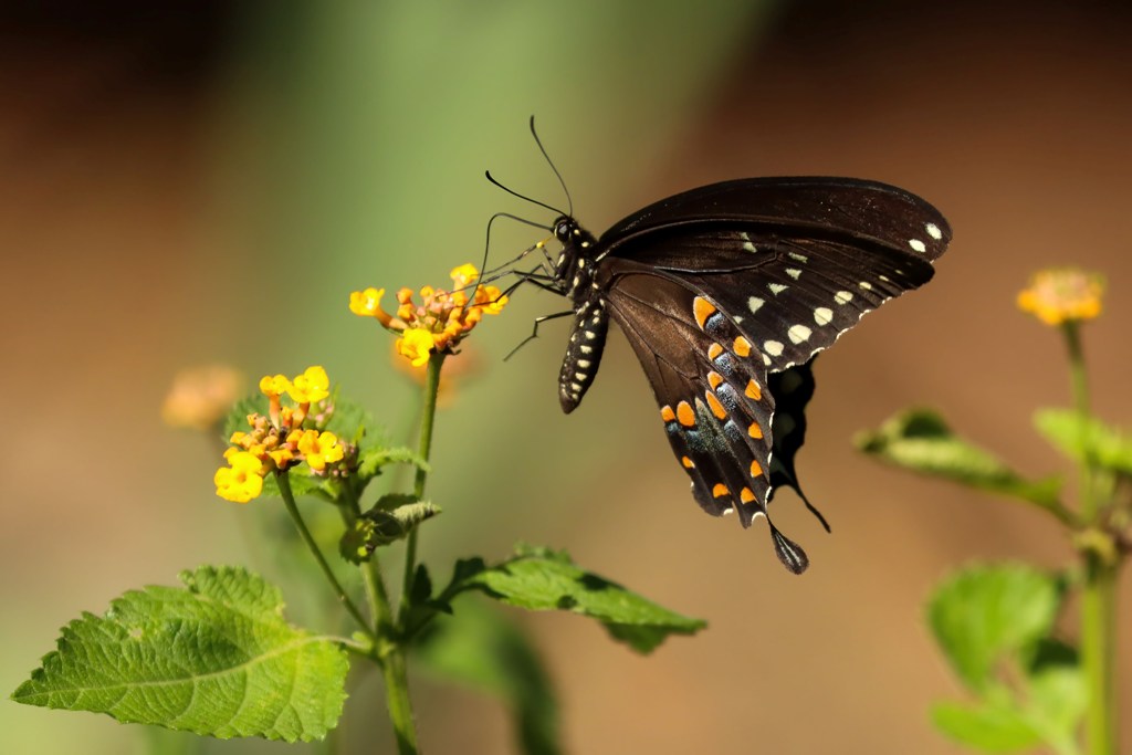 …and a Spicebush Swallowtail, who was flitting about amidst the Lantana blossoms.