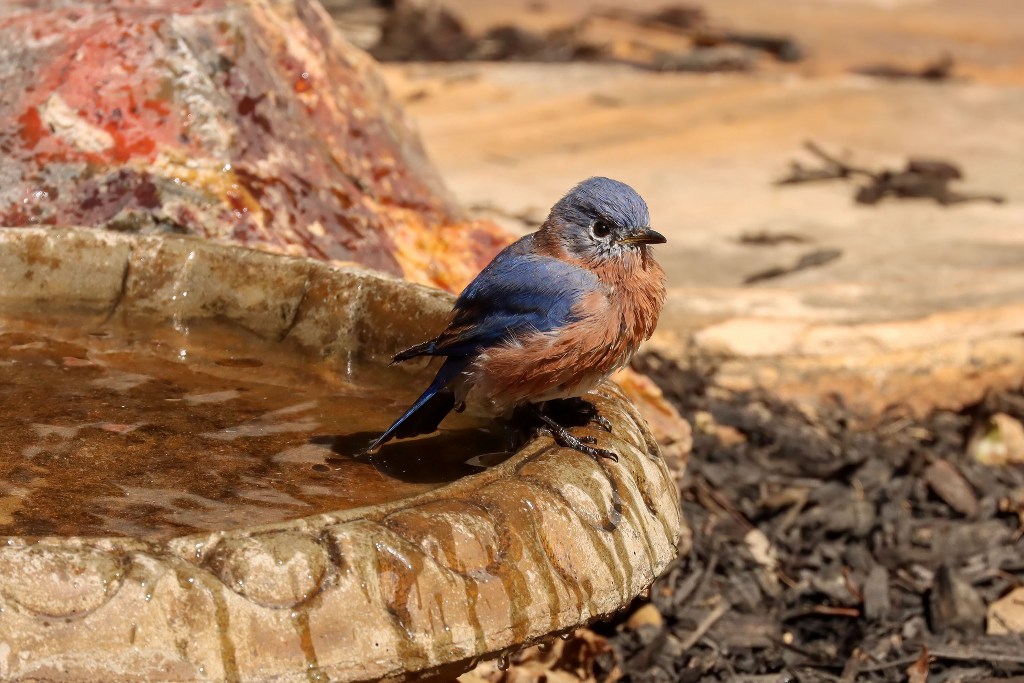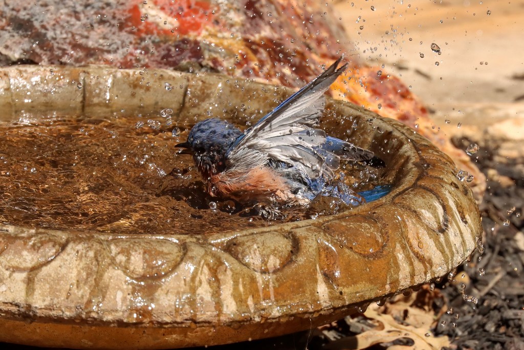 While I haven’t seen a partridge or a pear tree in the backyard (Can you tell I’m already singing Christmas songs?), I did see three birds a bathing.