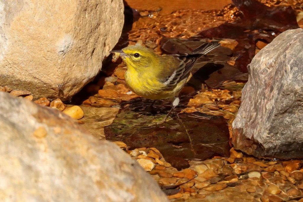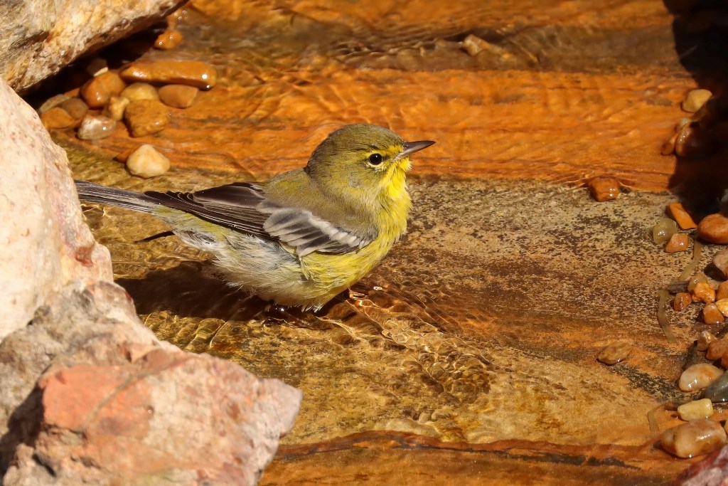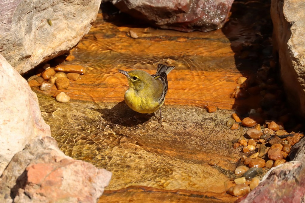 The first was a Pine Warbler, who chose a secluded little cove to take a sip and a dip.