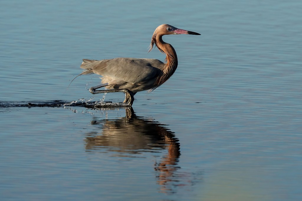 I also found it fascinating to watch the Reddish Egrets as they hunted. Sometimes he (or she) would run across the shallow water to get the fish moving…