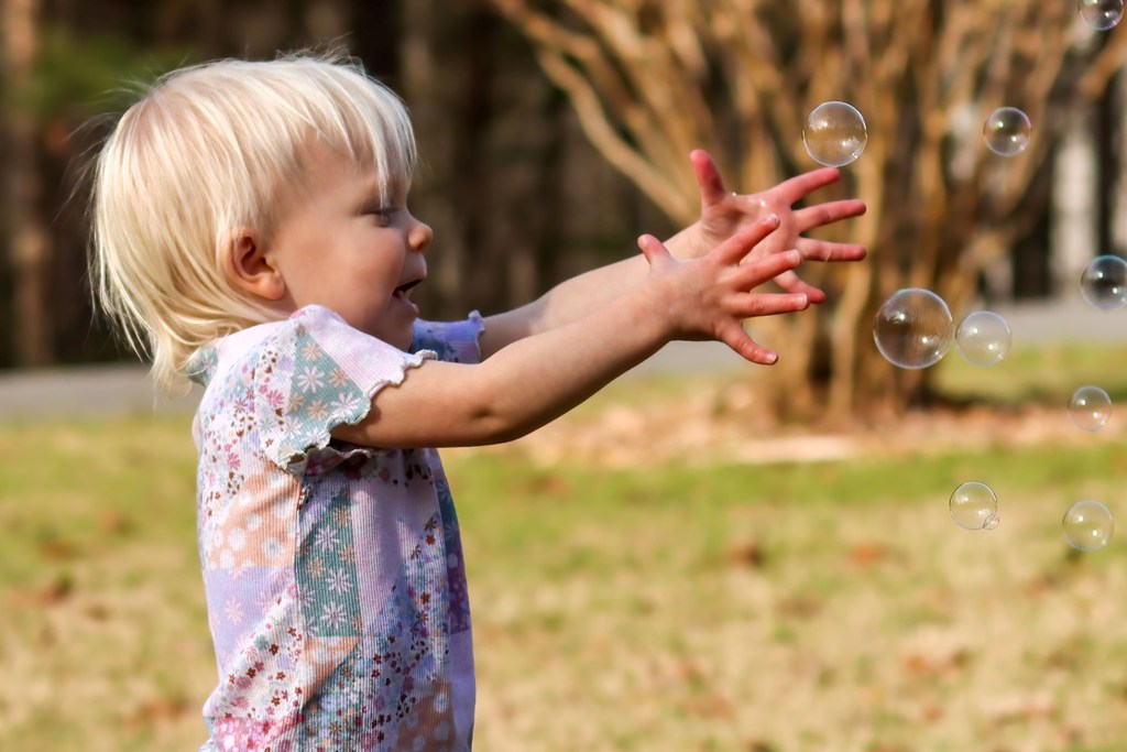 And, since it doesn’t seem right to have a post without some sort of picture, how about I close with the cutest little birdie I know – my grand-girlie enjoying some bubbles!
