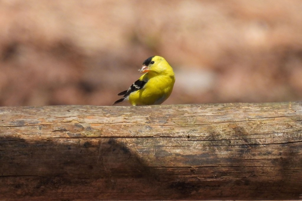 The male Goldfinches have been flitting (and flirting!) about the backyard! They are no longer dressed in their drab winter colors; now they are sporting their bright, eye-catching, “don’t-you-want-to-mate-with-me” feathers.
