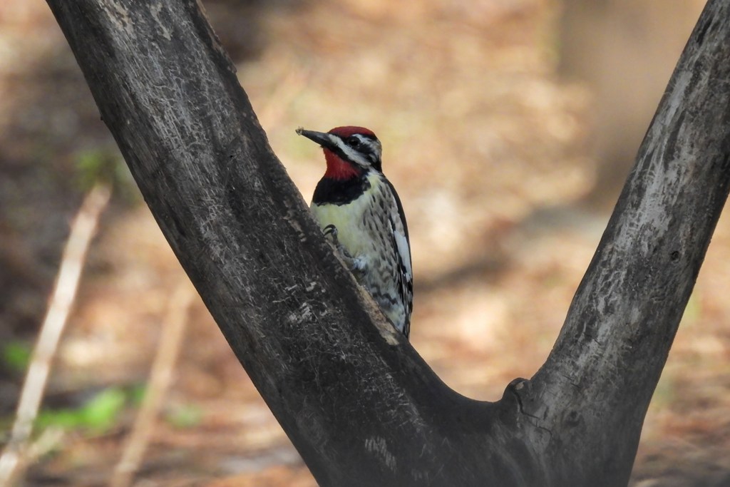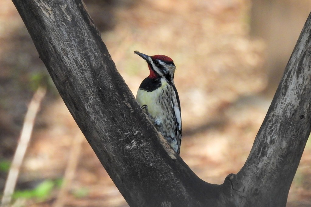 A Yellow-bellied Sapsucker (whom I affectionately called “Winston”) was a regular at our Bark Butter Branch during the winter season. He left about a month ago, but one of his kinfolk (coming in at bird #10 in the Thirty-Bird Challenge) made a brief appearance earlier this week.