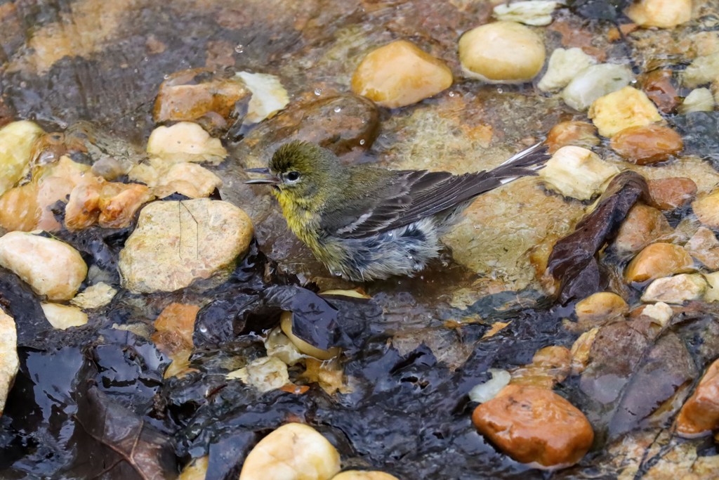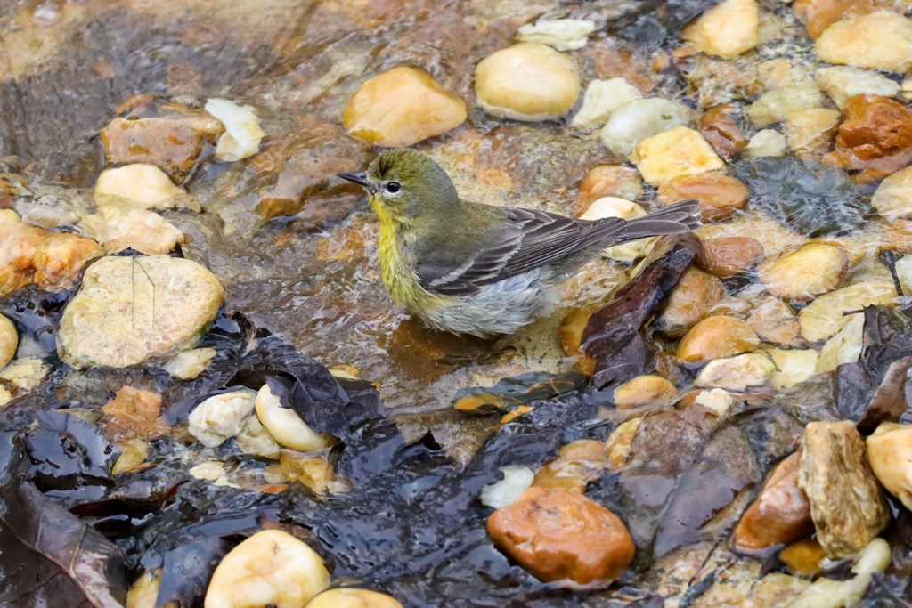 This pretty Pine Warbler (bird #11 in the count) stopped in for a bath just as the sun was setting.