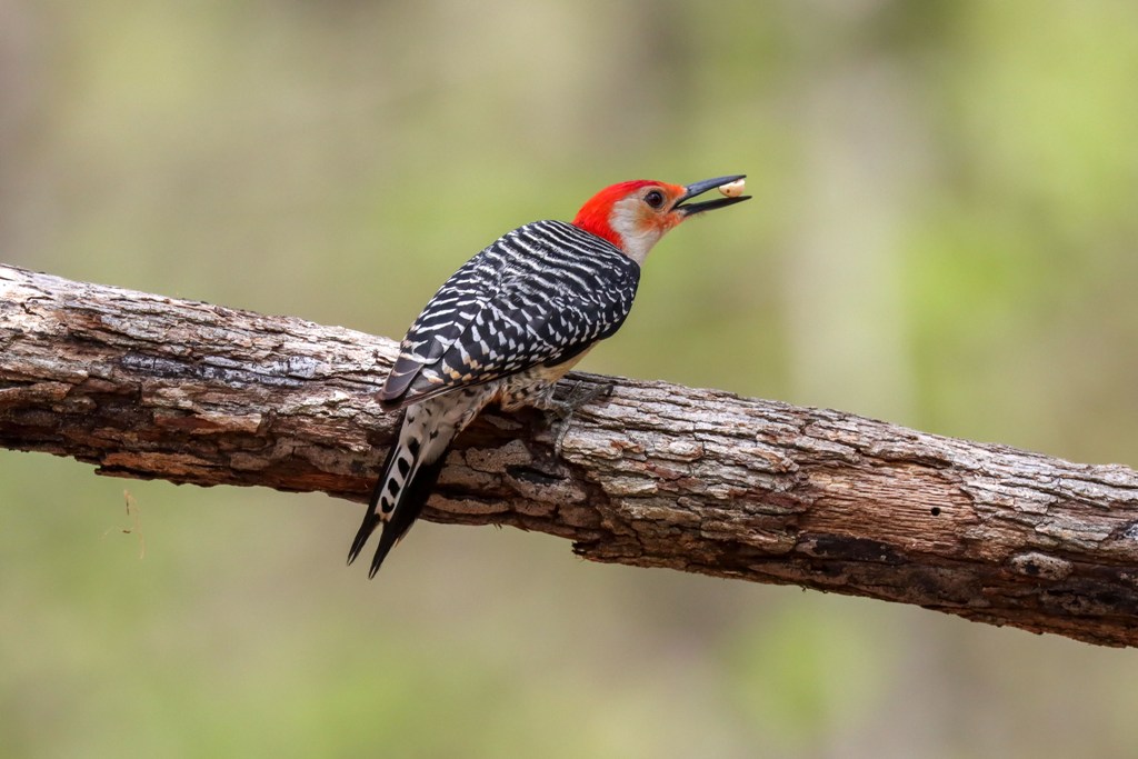 Sometimes the birds are in much more of a hurry at the feeders, quickly grabbing food and then disappearing with it, only to return a moment or so later to repeat the whole process – which is exactly what my Red-bellied Woodpecker has been doing.