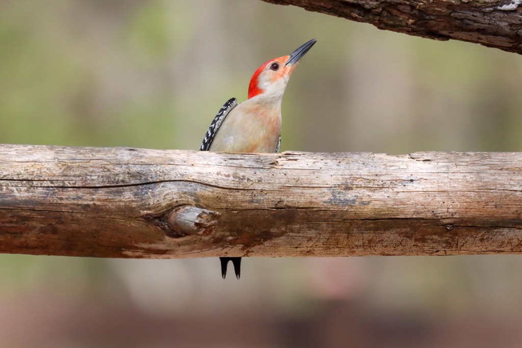 Beautiful photo! The red belly at my feeder often behaves the same way, but not always. They do seem to love the peanuts.
