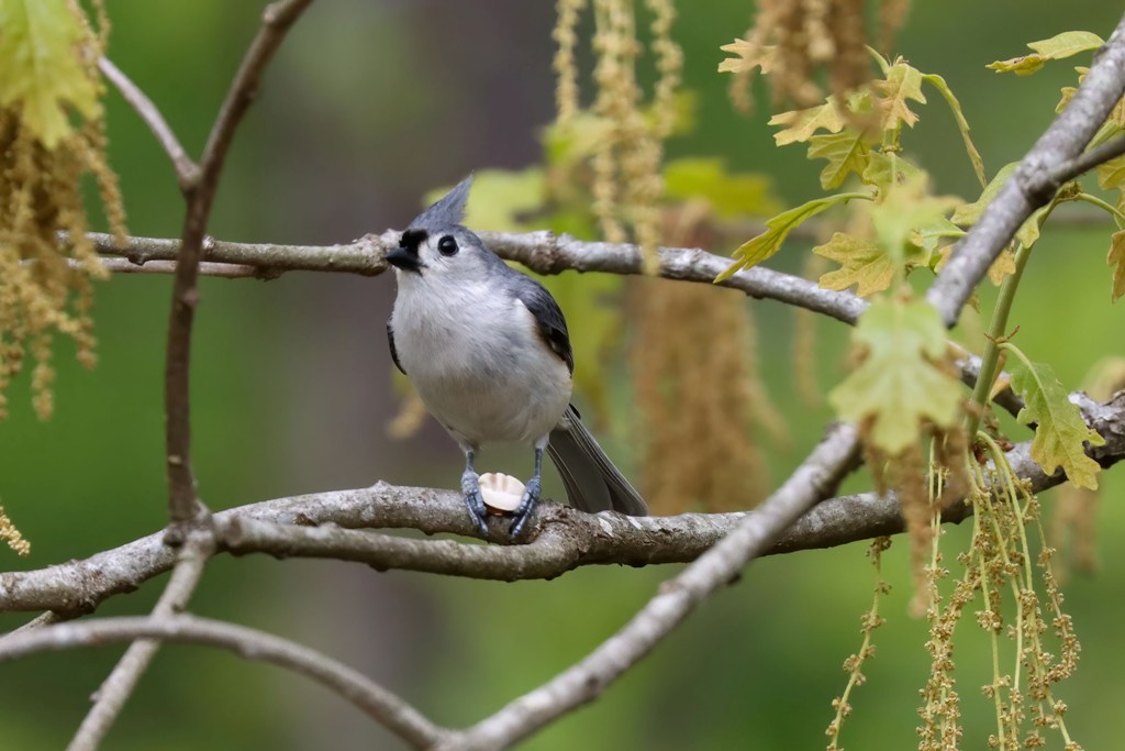 Tiny but tenacious – that would be an apt description for the Tufted Titmice that visit my backyard.