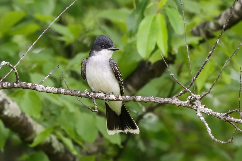 This Eastern Kingbird was darting about, dipping and diving to catch insects. When I saw him land on a limb, I tiptoed closer and was pleased that he didn’t seem to mind my presence. Is he not magnificent?
