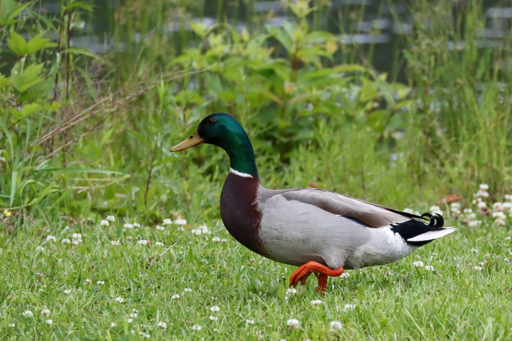 …a handsome male Mallard traipsing through the clover…