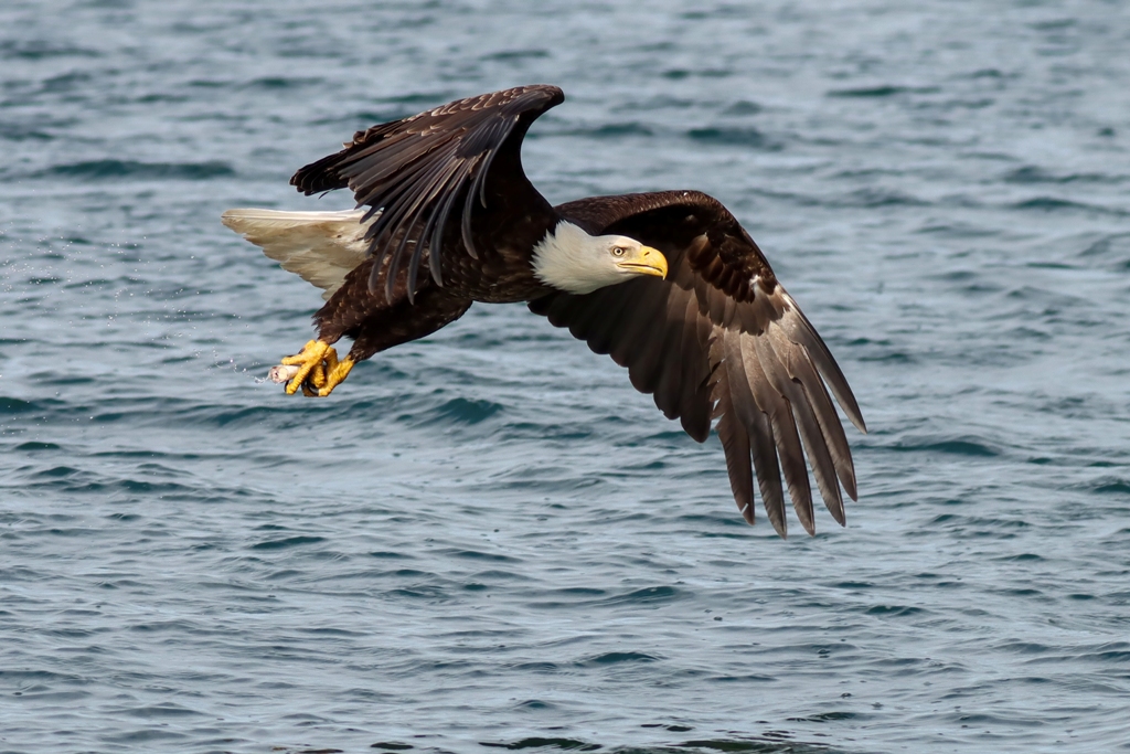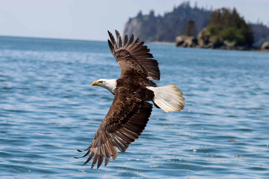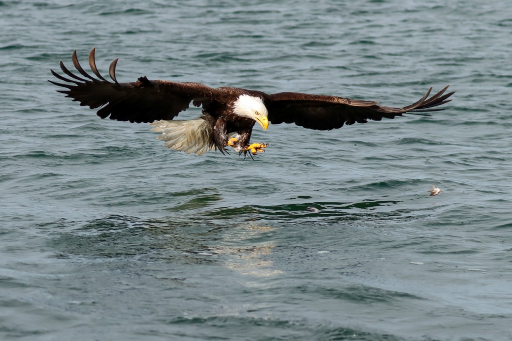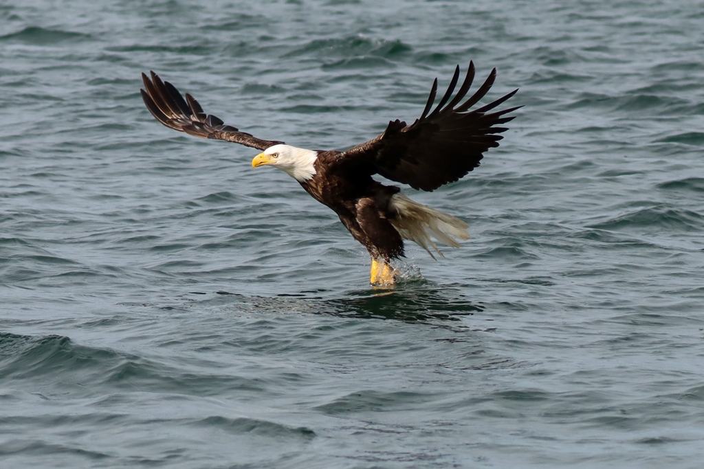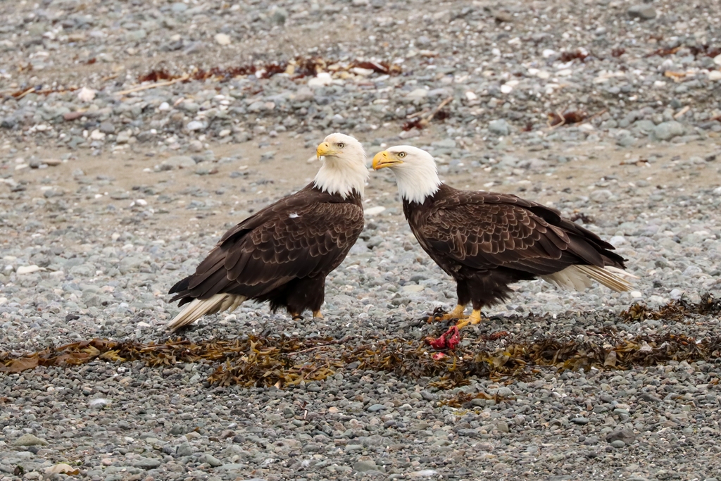 As we continued exploring the Bay, we noticed some Bald Eagles along the shore, and one of them was making a meal out of the remains of some small mammal.