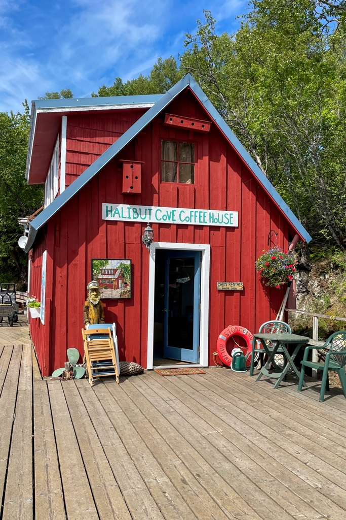 When it was time for lunch, we made our way to Halibut Cove, which has a population of about a dozen people, but somehow still has a dockside coffee (and milkshake) shop! We had packed a cooler of sandwiches and Glenn brought along some smoked salmon dip that was delicious.