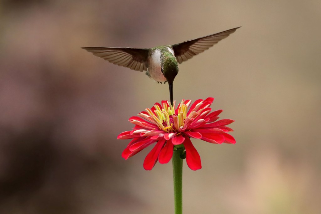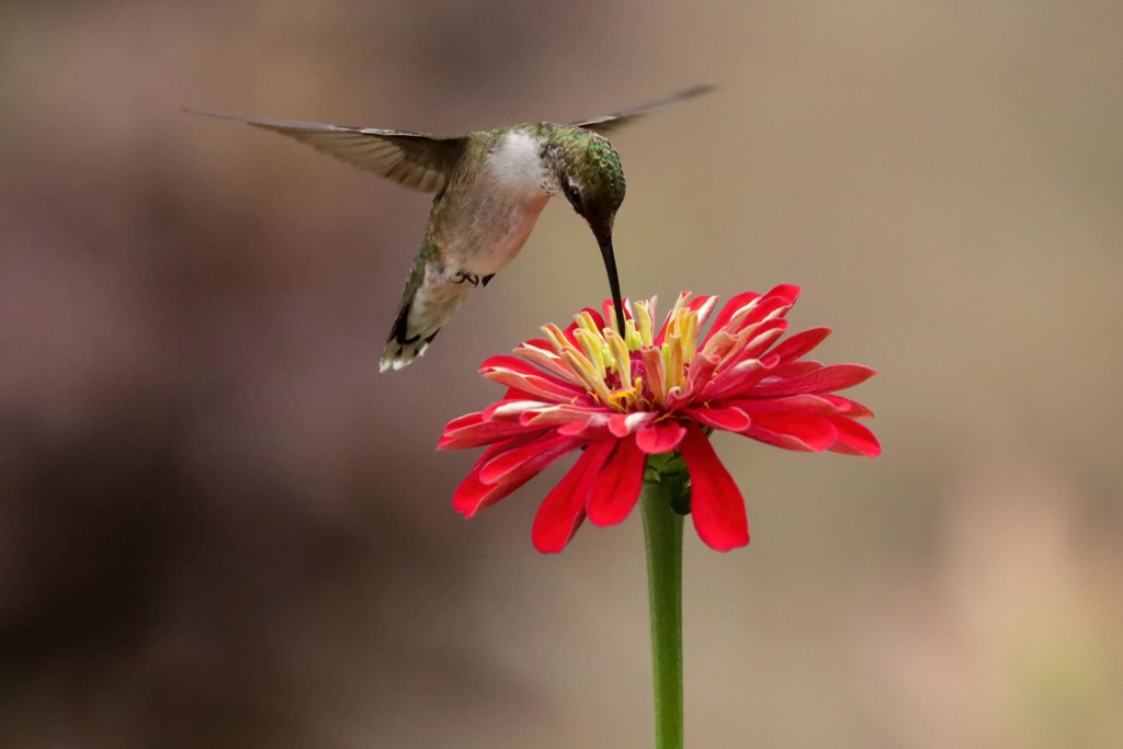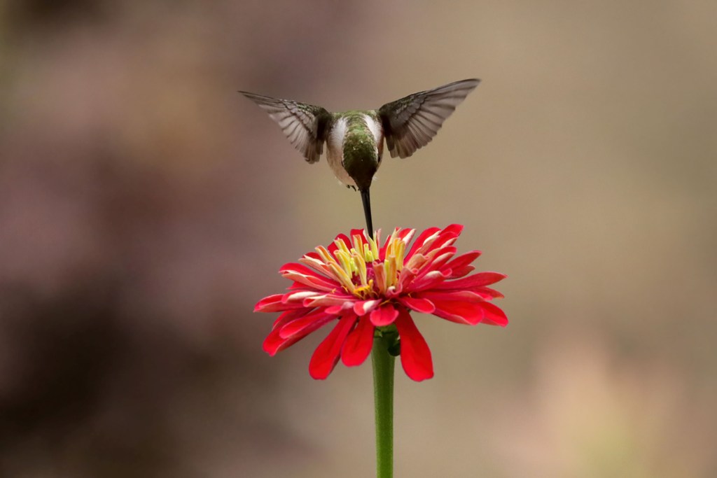 But what makes the flowers twice as nice is not just their own beauty, but the extra beauty that they bring – like this female Ruby-throated Hummingbird.