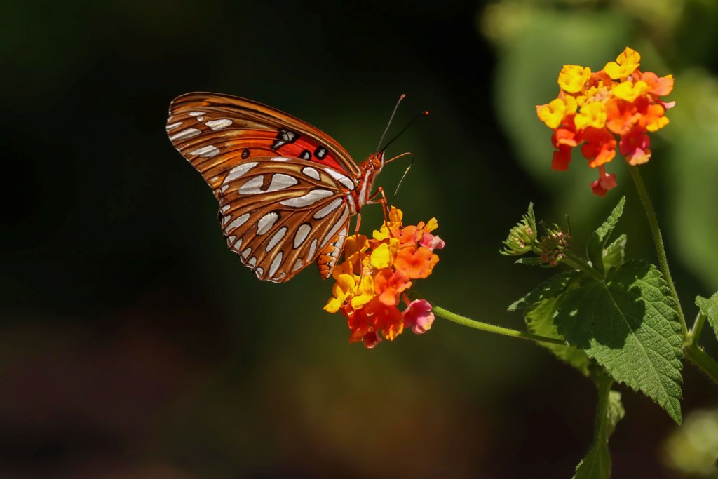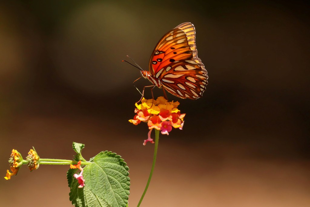 The zinnias are still quite the hot spot (literally, since it’s been in the mid 90’s everyday!), but there is at least one butterfly that has been loving the lantana lately – the Gulf Fritillary.