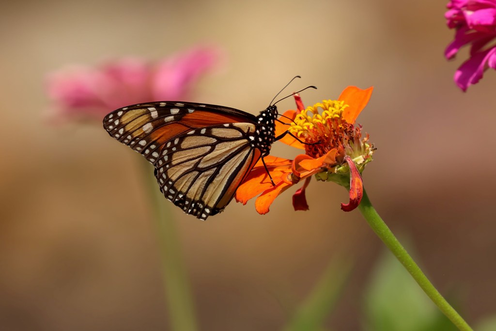 So…I was sitting at my desk the other day, fully focused on the mock draft I was doing in prep for the upcoming Fantasy Football season (I am intent on taking first place in the League of Low Expectations!) when what to my wondering eyes should appear but a majestic Monarch flitting about the Zinnias.