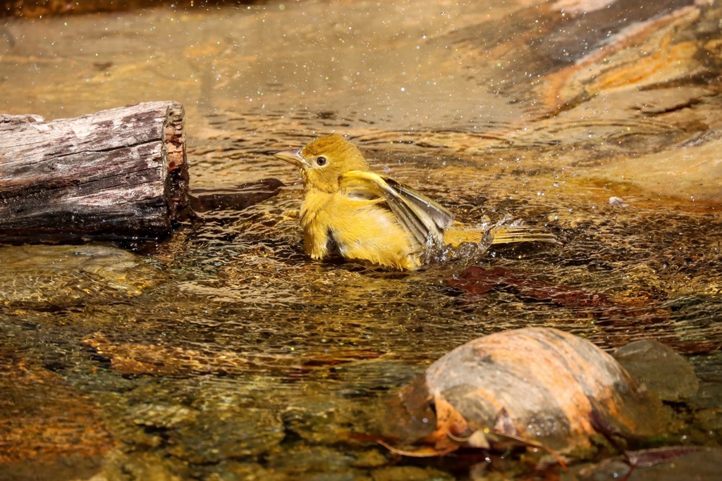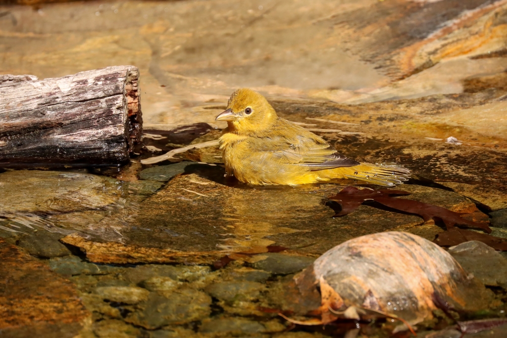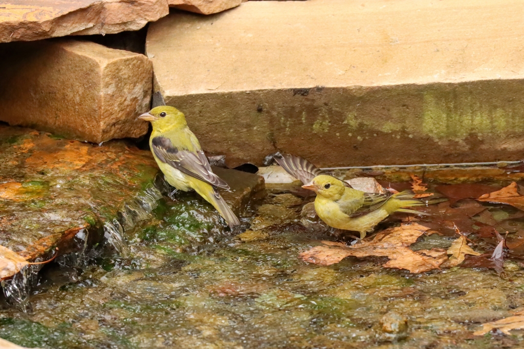 A pair of female Scarlet Tanagers also showed up to enjoy a quick dip in the upper level.