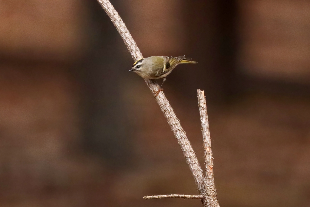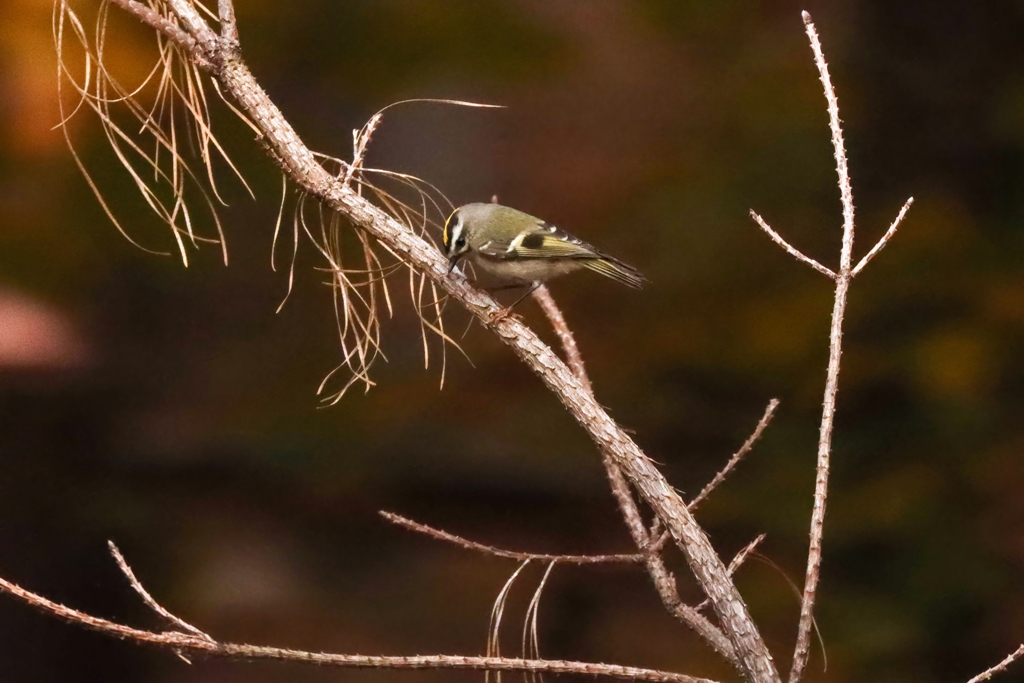 The Golden-crowned Kinglet showed up a bit later, also hanging out on the branches near the fountain.
