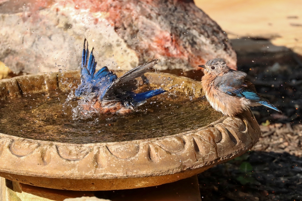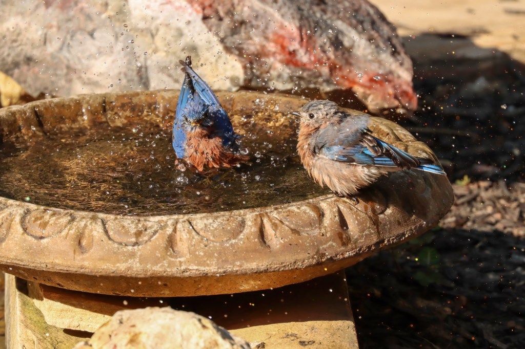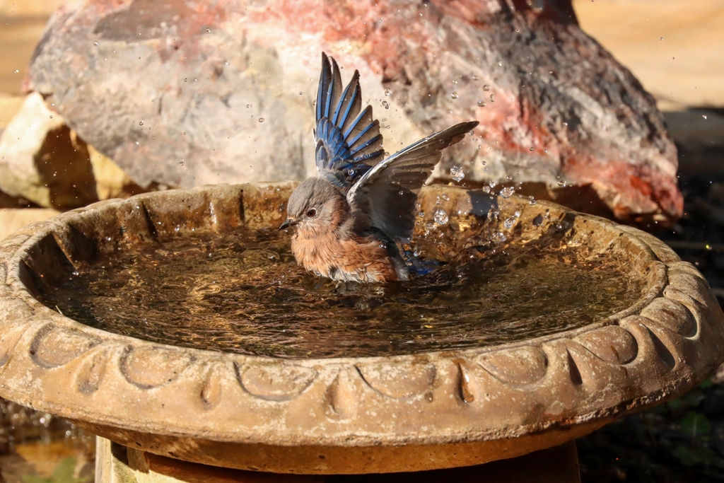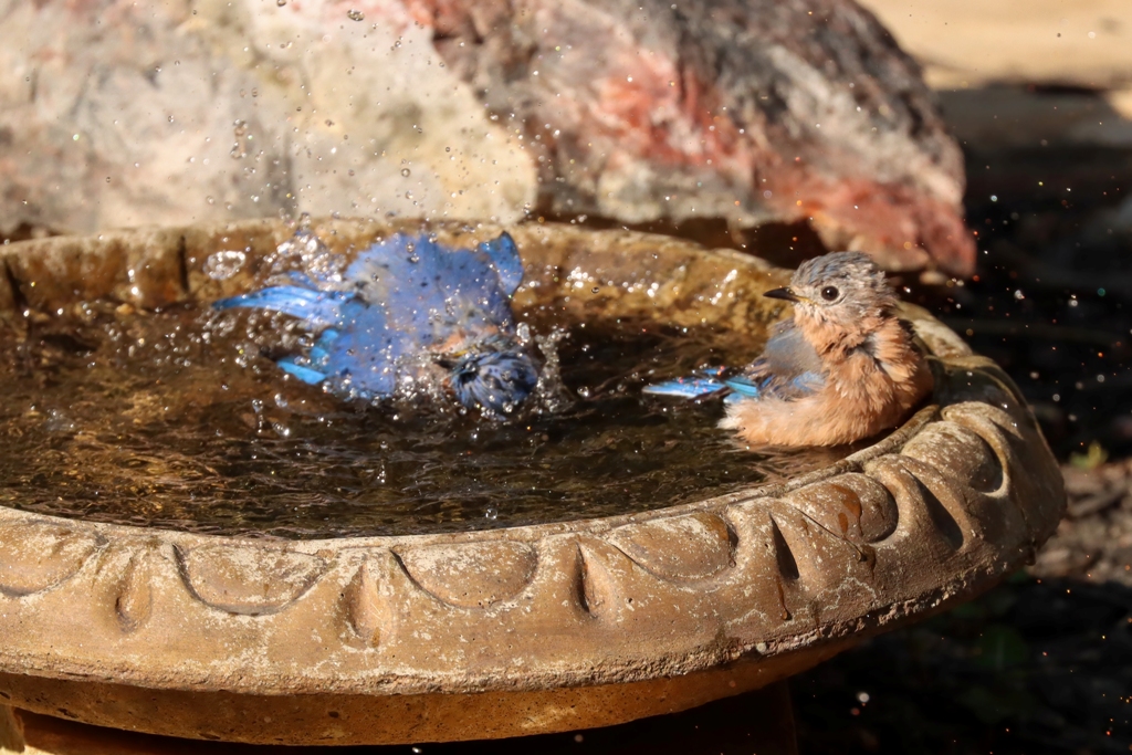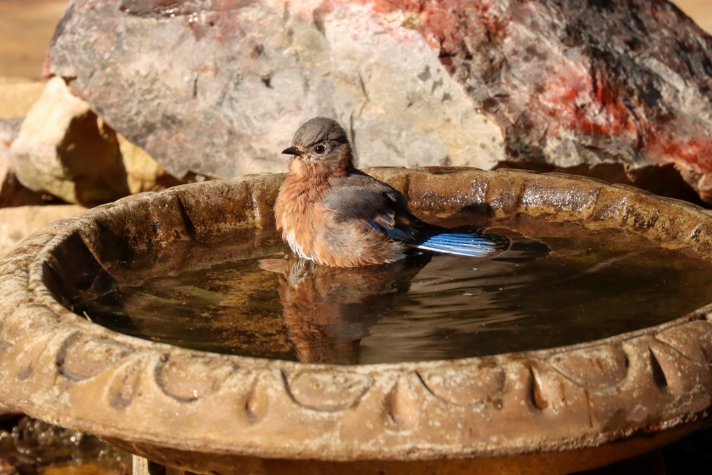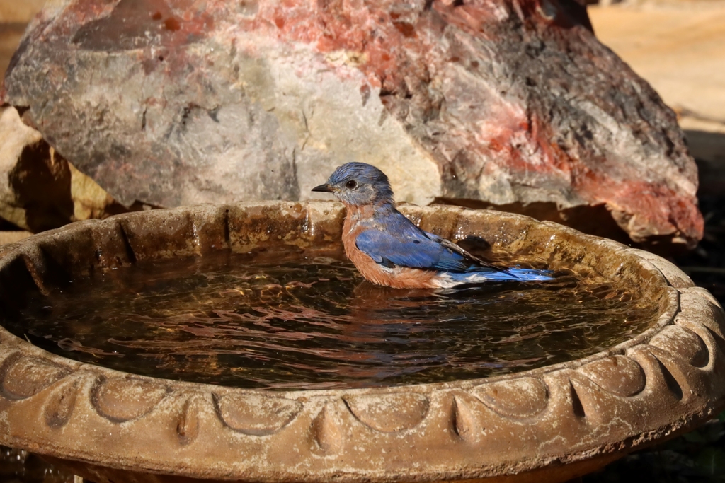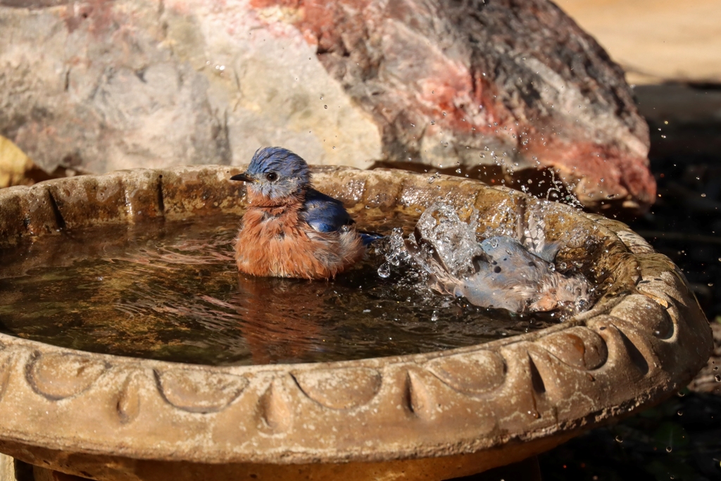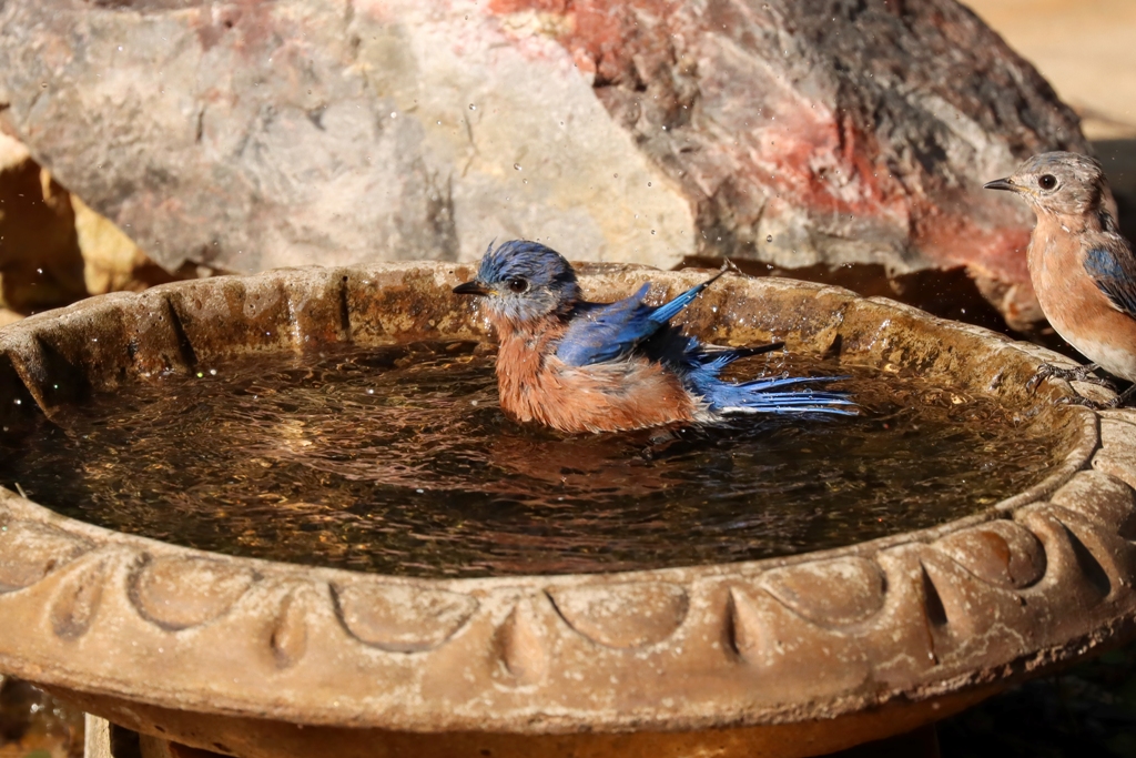 The Eastern Bluebirds are yet another bird that love a backyard bath. This handsome fella popped in the other day and set about the business of enjoying a satisfying soak.